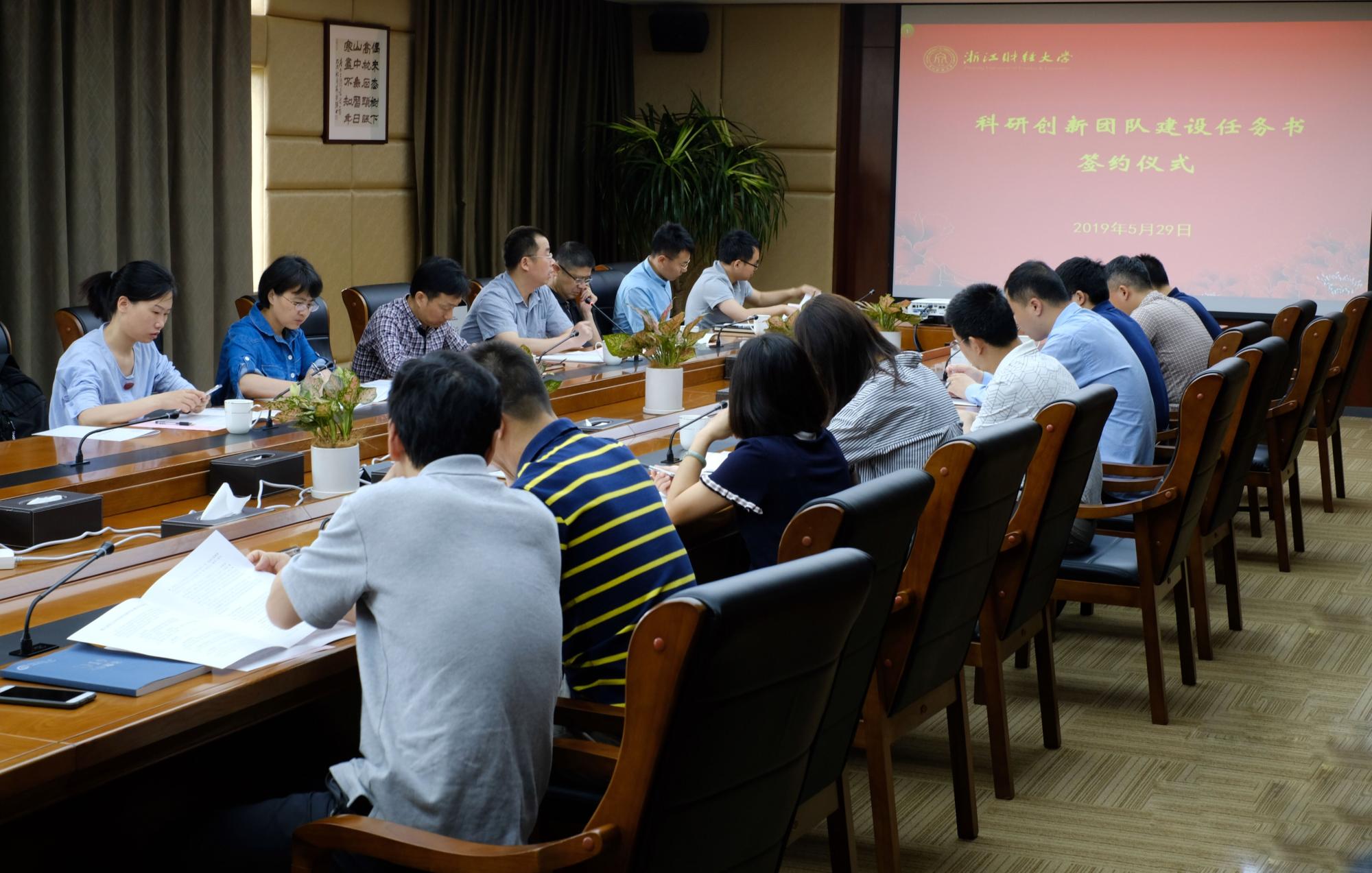 5月29日,学校举行科研创新团队建设任务书签订仪式,校党委副书记卢新波出席并讲话。科研处和校级科研创新团队负责人及核心成员等参加签约仪式。