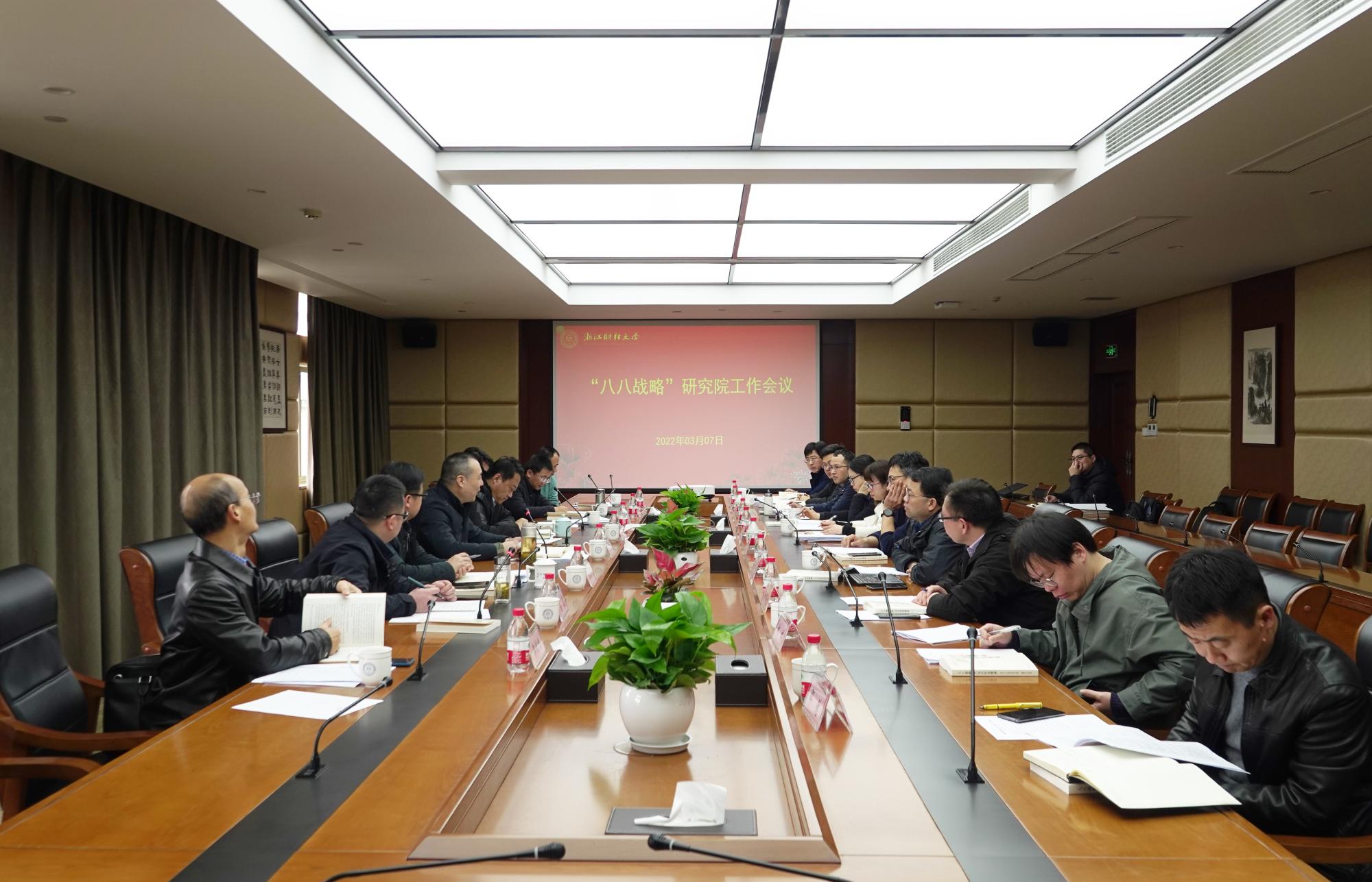 3月7日,浙江省“八八战略”研究院召开2022年工作会议。校党委书记、研究院院长李金昌主持会议并讲话。副校长、研究院副院长李占荣,校党委委员、宣传部部长、研究院秘书长楼胆群出席会议。研究院副秘书长、办公室主任,各研究团队负责人等参加会议。