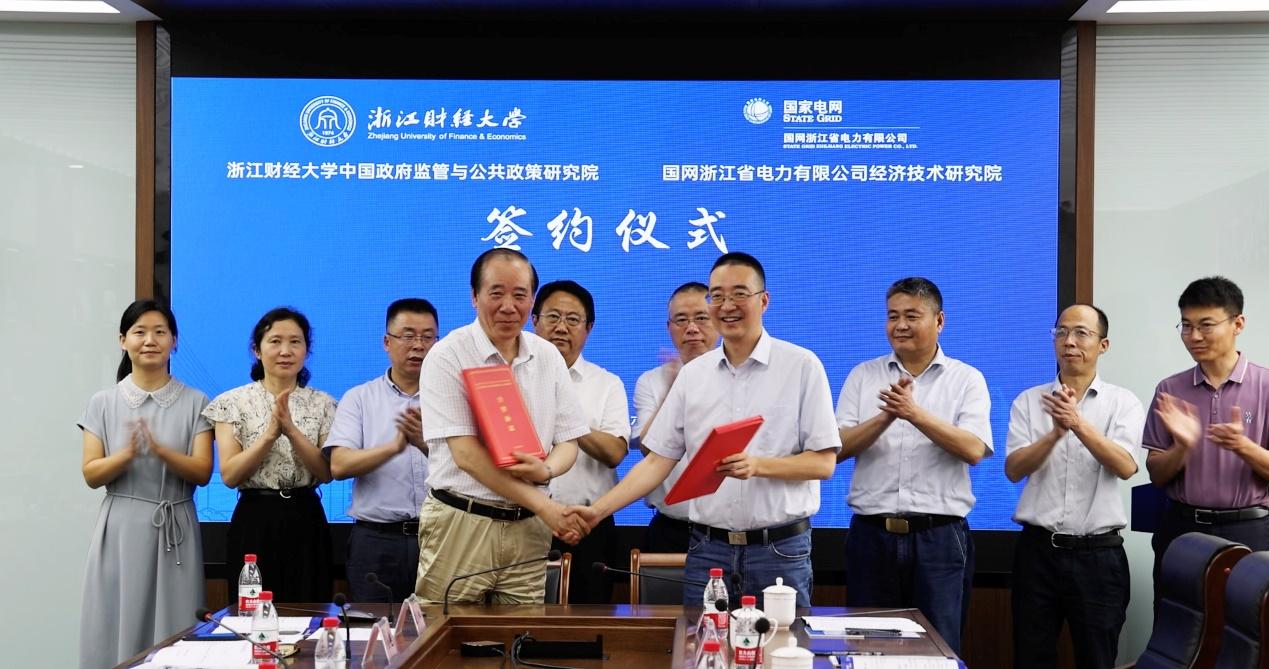 6月26日,浙江省新型重点专业智库中国政府监管与公共政策研究院与国网浙江省电力有限公司经济技术研究院合作协议签约仪式在我校下沙校区举行。副校长李占荣,省特级专家、中国政府监管与公共政策研究院院长王俊豪,国网浙江省电力有限公司党委委员、副总经理史兴华,国网浙江经研院党委副书记、院长王锋华等出席签约仪式。