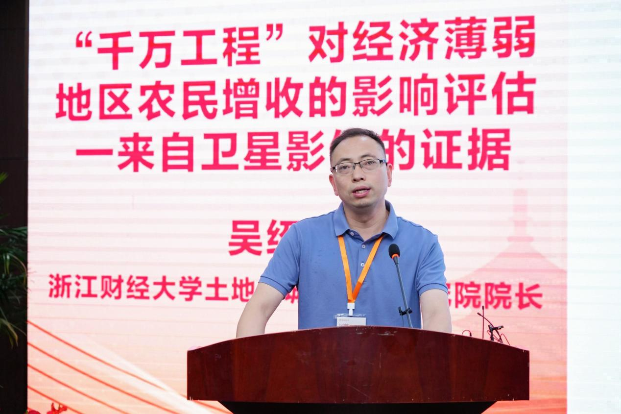 主旨发言环节,杭州经济技术开发区原党工委书记、管委会主任盛成皿,省委党校原副校长陈立旭、省委政研室原副主任郭占恒,省社科院原副院长陈野,省发展和改革研究所原所长卓勇良及我校土地与城乡发展研究院院长吴绍华等六位专家分别以“‘八八战略’在杭州经济技术开发区的生动实践”“‘八八战略’引领两个先行”“‘八八战略’:跨越时空的思想传承和行动指南”“文化治理视野中的乡村振兴——以农村文化礼堂建设为例”“浙江民营经济发展”“‘千万工程’对经济薄弱地区农民增收的影响评估——来自卫星影像的证据”为题作了主旨发言。