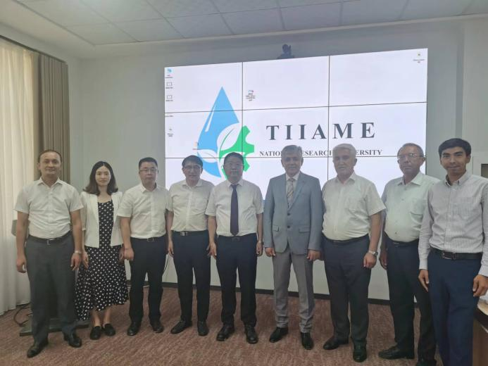 在乌兹别克斯坦国立研究大学,代表团与该校校长巴哈迪尔·米尔扎耶夫、副校长巴赫蒂亚尔·胡达亚罗夫、生态地理信息系统中心主任阿里姆·普拉托夫、国际处处长谢尔佐德·拉赫莫诺夫等座谈。双方深入探讨了人才联合培养、教师互访、科研合作、中外合作办学等方面合作的可行性,并商定继续推进,达成合作。