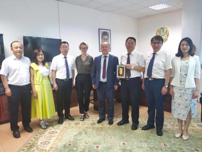 访哈期间,代表团还拜会了中国驻哈萨克斯坦大使张霄。张霄大使充分肯定我校在疫情期间对哈教育合作、连续举办三届中哈论坛、智库合作等方面作出的积极贡献。他表示,非常赞同我校将哈萨克斯坦研究中心升级为中亚研究院,希望继续增进与哈方高校的交流合作,联合培养人才,加强学术研究,为深化中哈两国关系和国家总体外交服务。