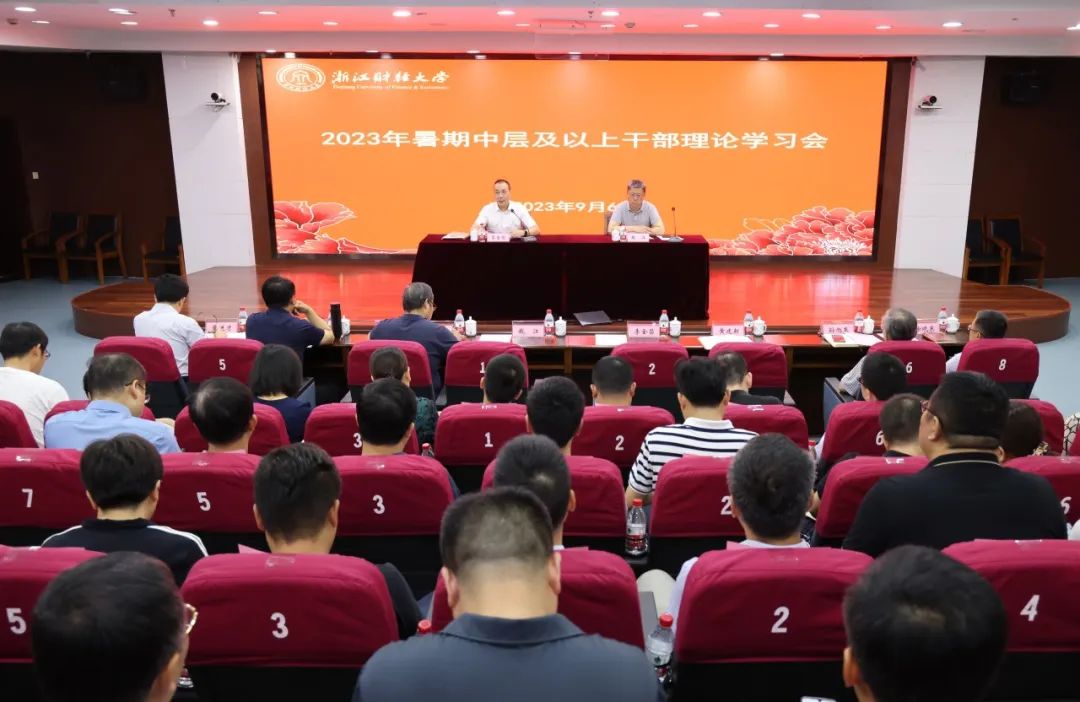 9月6日至7日,学校2023年暑期中层及以上干部理论学习会在下沙校区召开。会议深入学习贯彻习近平新时代中国特色社会主义思想,以学校新发展阶段使命愿景为指引,聚焦学校高质量发展建设,推进学校在大局中找坐标、谋新篇、开新局,凝聚奋斗力量、形成发展共识。校党委书记李金昌,党委副书记、副校长(主持行政工作)魏江出席并作报告。