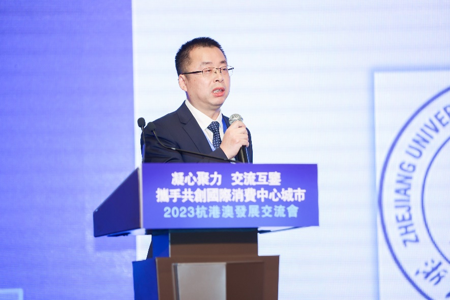 11月2日,以“凝心聚力,交流互鉴,携手共创国际消费中心城市”为主题的“2023杭港澳发展交流会”在香港举行,来自杭港澳三地政府主管部门和行业知名人士、协会、企业的200余名代表参加了会议。我校金通教授应邀参加交流会并作了题为“深化杭港澳交流合作 推动消费提能升级”的主旨报告。