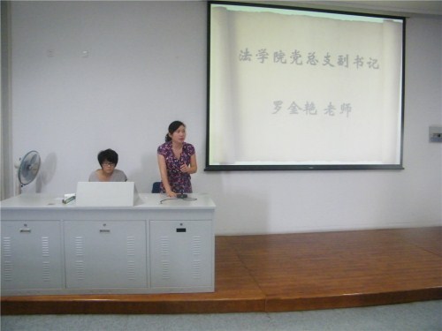 下午一点,法学院在教学楼D102举行了首次2011届毕业生年级大会。大会伊始,党总支副书记罗金艳老师隆重地介绍了到场的嘉宾——法学院康莉莹教授,学办主任兼分团委书记王文婷老师,以及辅导员张诗弦老师。此次大会围绕着学院的“3T”服务制 ——考研团队,服务社会团队和就业团队,力求让每个毕业学子学有所成,有一个美好的未来。