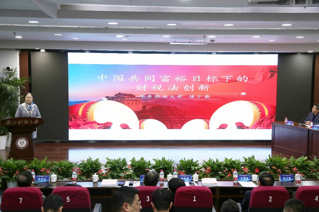 浙江省委政法委一级巡视员、省法学会副会长陆剑锋、ued体育 副校长李占荣、浙江省税务学会会长周广仁、中国法学会财税法学研究会副会长、上海市法学会财税法学会会长陈少英、浙江省法学会研究部主任楼杰科、ued体育 法学院党委书记朱丹,北京盈科(杭州)律师事务所执行主任刘春晓以及来自各高校和实务界的专家、学者、青年学子等120余人参加了本次大会。