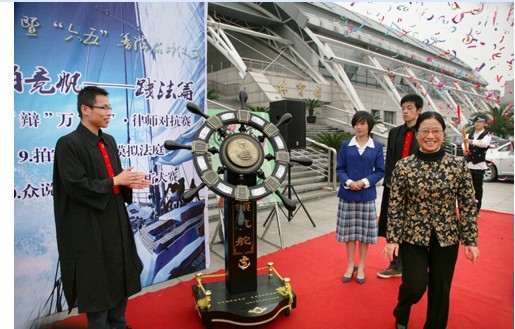 最后,王宇航副书记转动标志着“法海起航”正式开始的舵盘,为我校第十二届“法律文化节”暨“六五”普法活动拉开序幕。