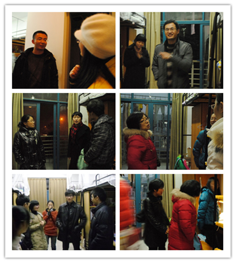 在整洁干净的寝室里,导师们纷纷就同学们所关心的专业学习、期末考试、宿舍生活等问题与所带学生进行亲切交流,同学们纷纷敞开心扉畅谈,寝室里不时传来阵阵愉快的笑声,场面十分温馨。
