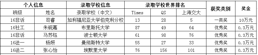 附:法学院2020年本科生攻读国(境)外名校研究生奖学金初评获奖名单