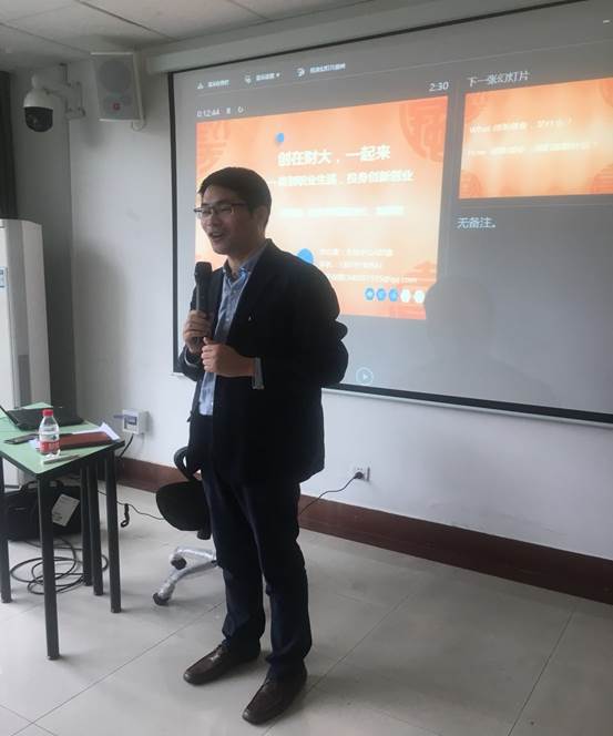 2017年10月17日下午,法学院邀请了创业学院副院长沈鑫泉老师,为法学院师生开展了一场主题为“创在财大,一起来”的讲座,对法学和社工学生就创新创业问题进行培训。讲座由社工系王婷老师主持。