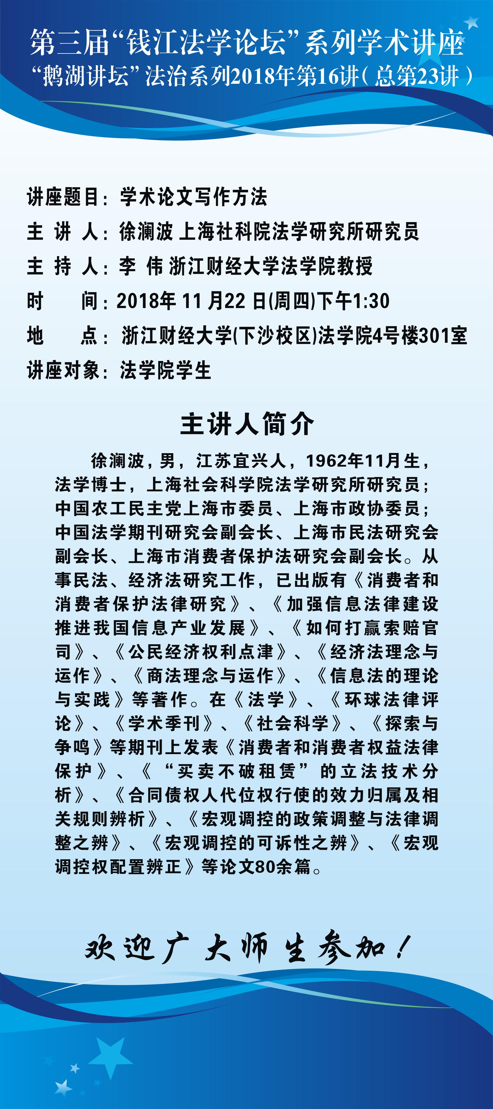 “鹅湖讲坛”法治系列2018年第16讲(总第23讲)上海社科院法学研究所徐澜波研究员