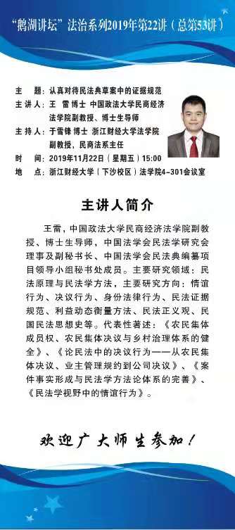 “鹅湖讲坛”法治系列2019年第22讲(总第53讲)中国政法大学民商经济法学院王雷副教授