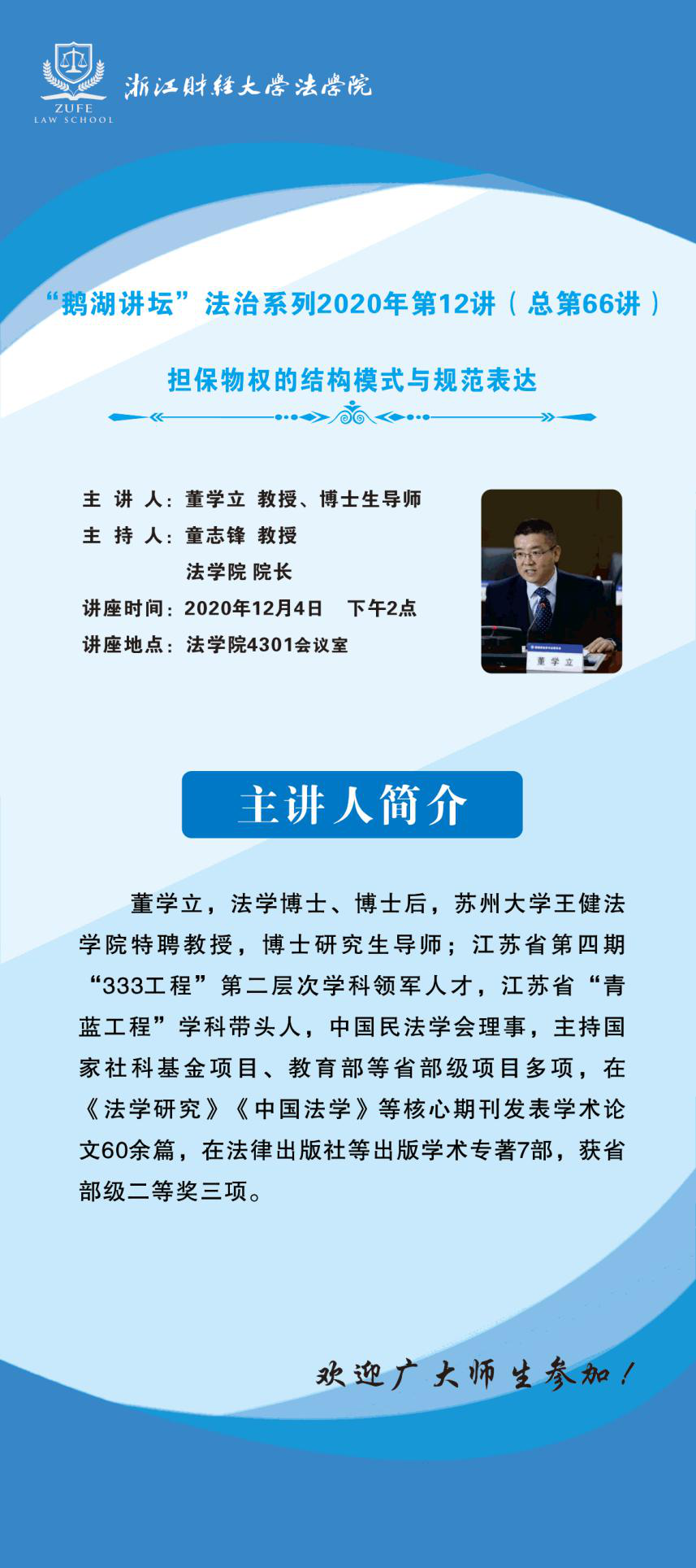 “鹅湖讲坛”法治系列2020年第12讲(总第66讲)苏州大学王健法学院董学立教授