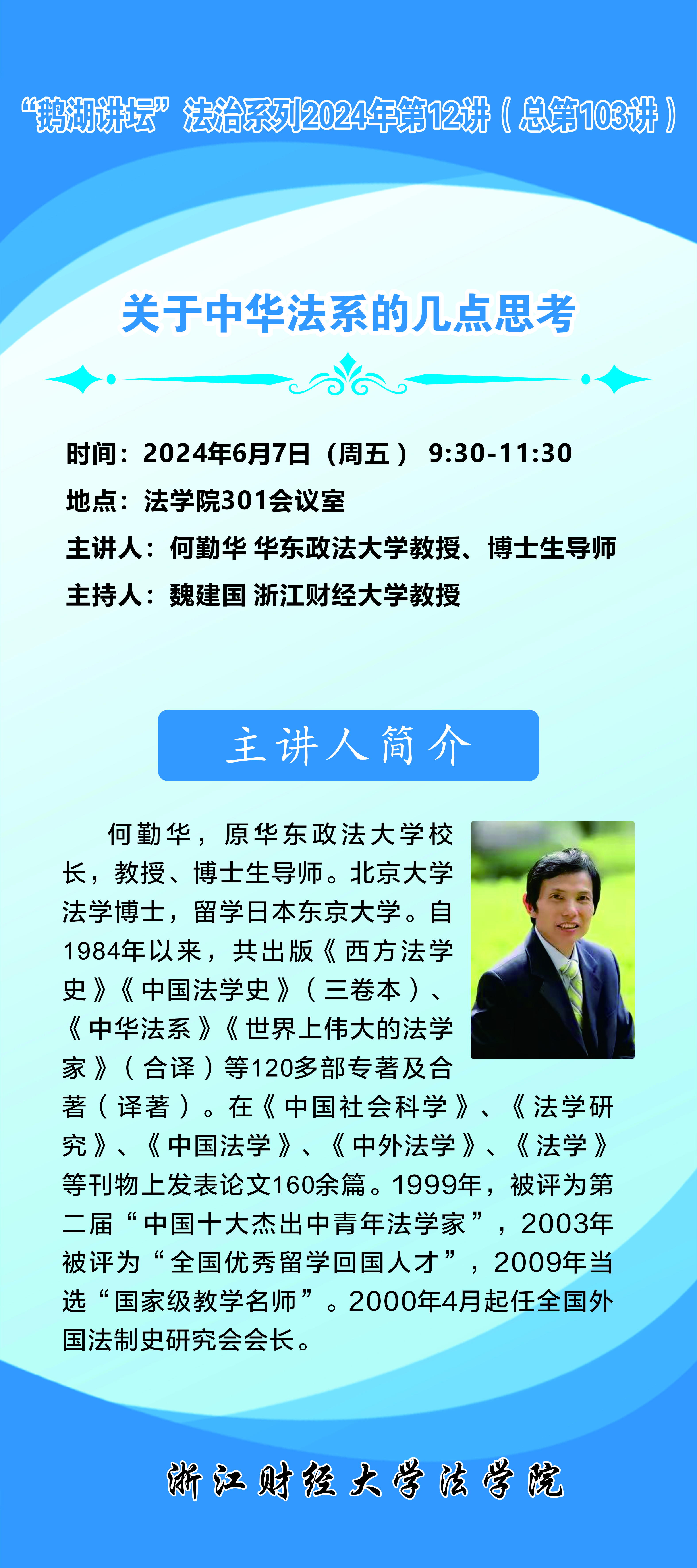 “鹅湖讲坛”法治系列2024年第12讲(总第103讲)华东政法大学何勤华教授