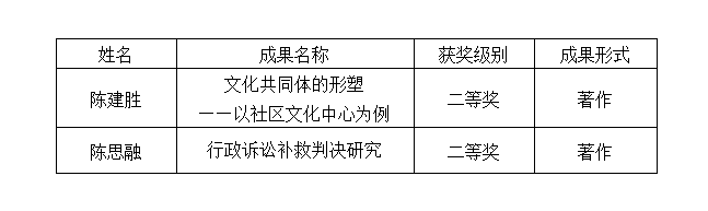 近日,浙江省第二十一届哲学社会科学优秀成果奖评选结果揭晓,我院陈建胜副教授、陈思融副教授成果分别获浙江省第二十一届哲学社会科学优秀成果奖。