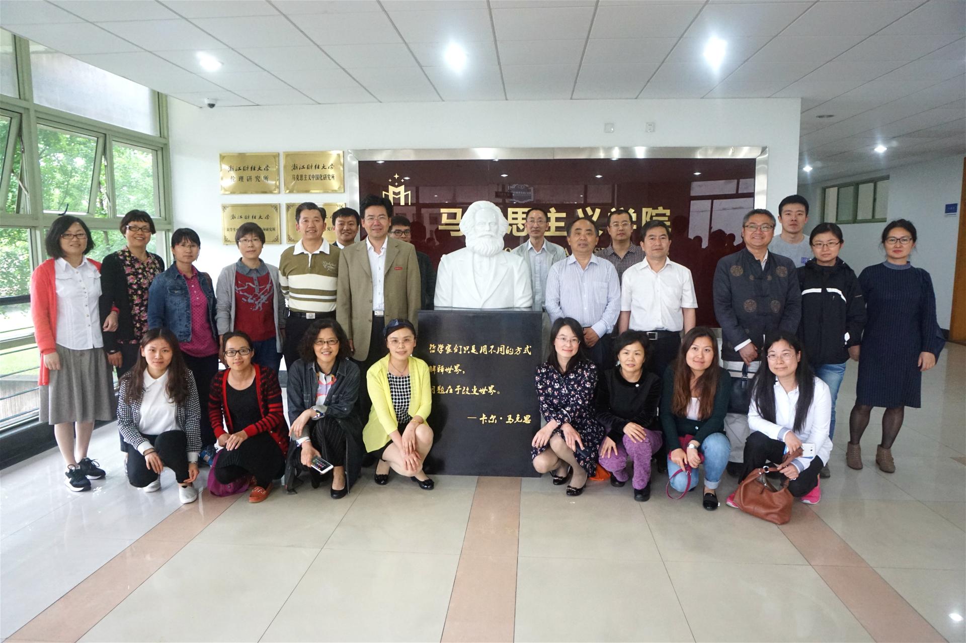 5月20日,值此“第三届中国特色社会主义发展论坛——纪念巴黎公社145周年暨ued体育 马克思主义学院揭牌仪式”在我校举办之际,我院举行大型马克思雕像落成典礼。马克思主义学院全体师生六十多人参加了这一活动。