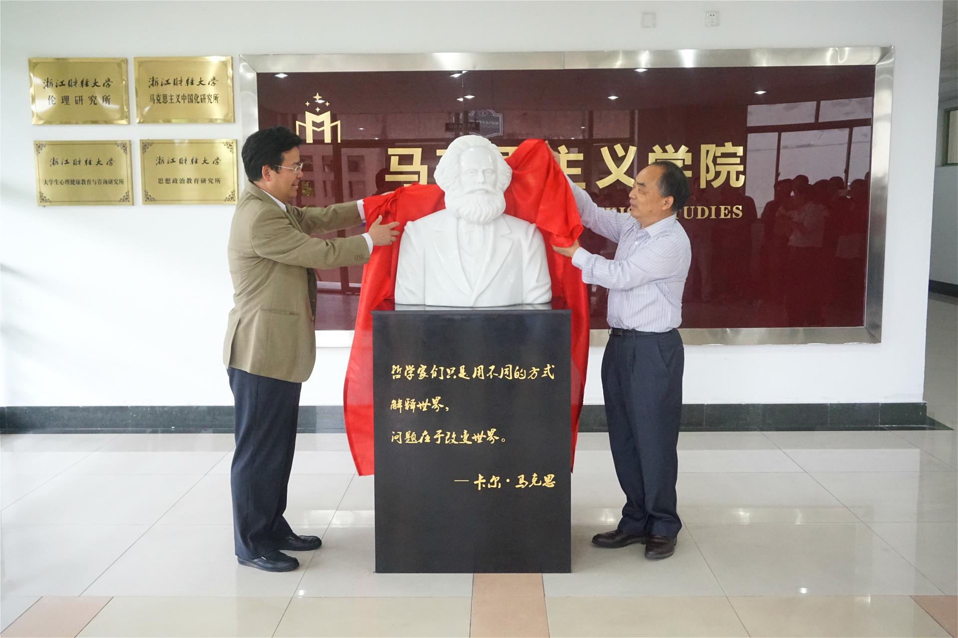 落成典礼由马克思主义学院院长华正学教授主持。中国社会科学院马克思主义研究院党委书记、院长邓纯东研究员、ued体育 励如孟副校长共同为马克思雕像揭幕。