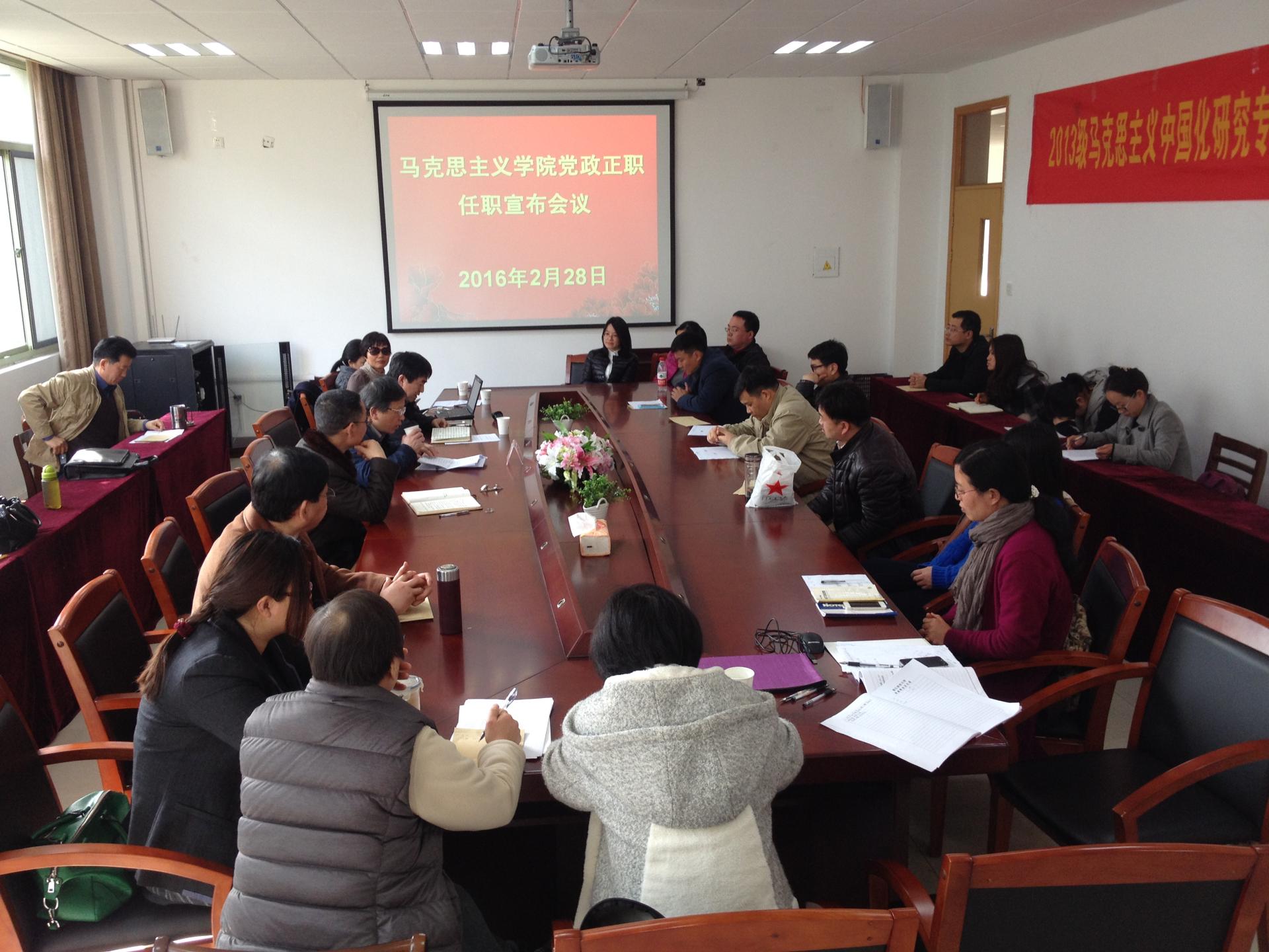 2016年2月28日,新学期开学第一天,学院召开全体教职工大会,校党委副书记钟晓敏教授代表学校党委、行政宣布关于我院党政正职任命的决定。会议由学院院长兼党委书记华正学主持。