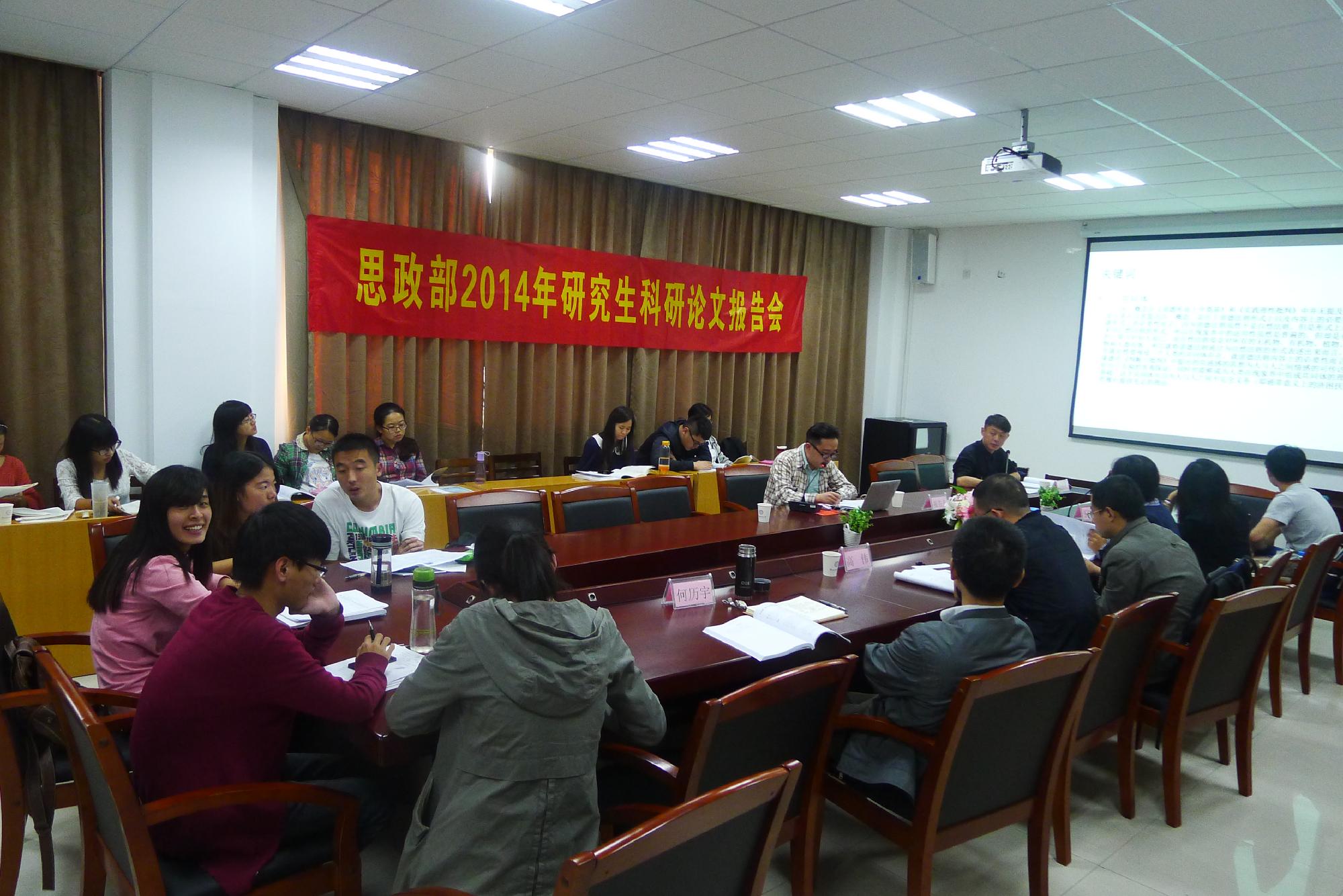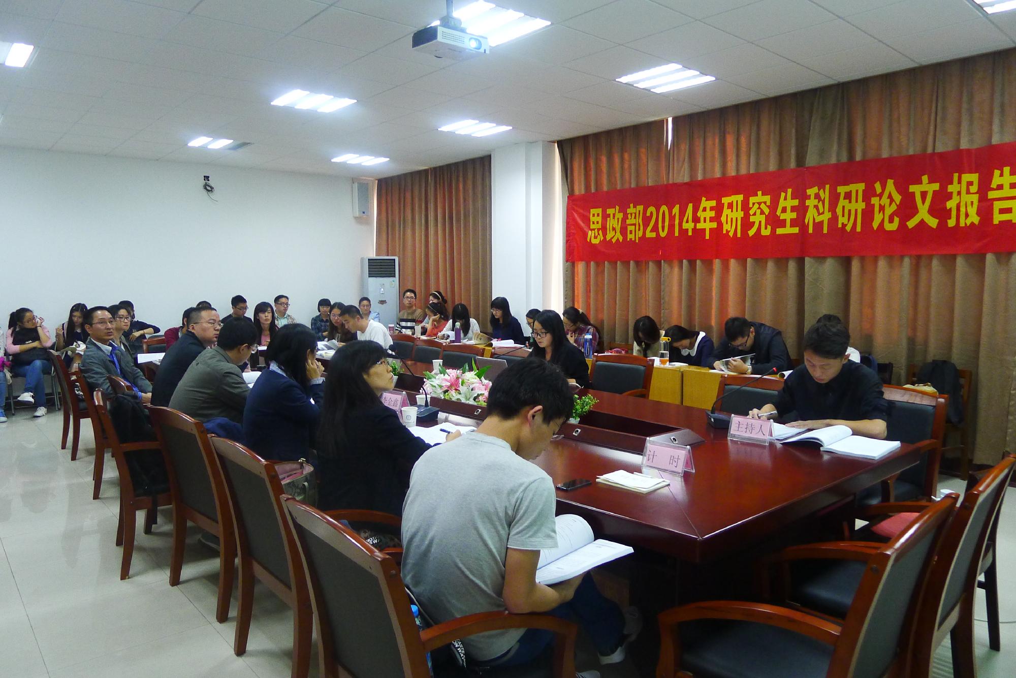 ,“思政部2014年研究生科研论文报告会”在3-211隆重举行。思政部领导、评委老师以及思政部全体研究生参加了此次论文报告会。