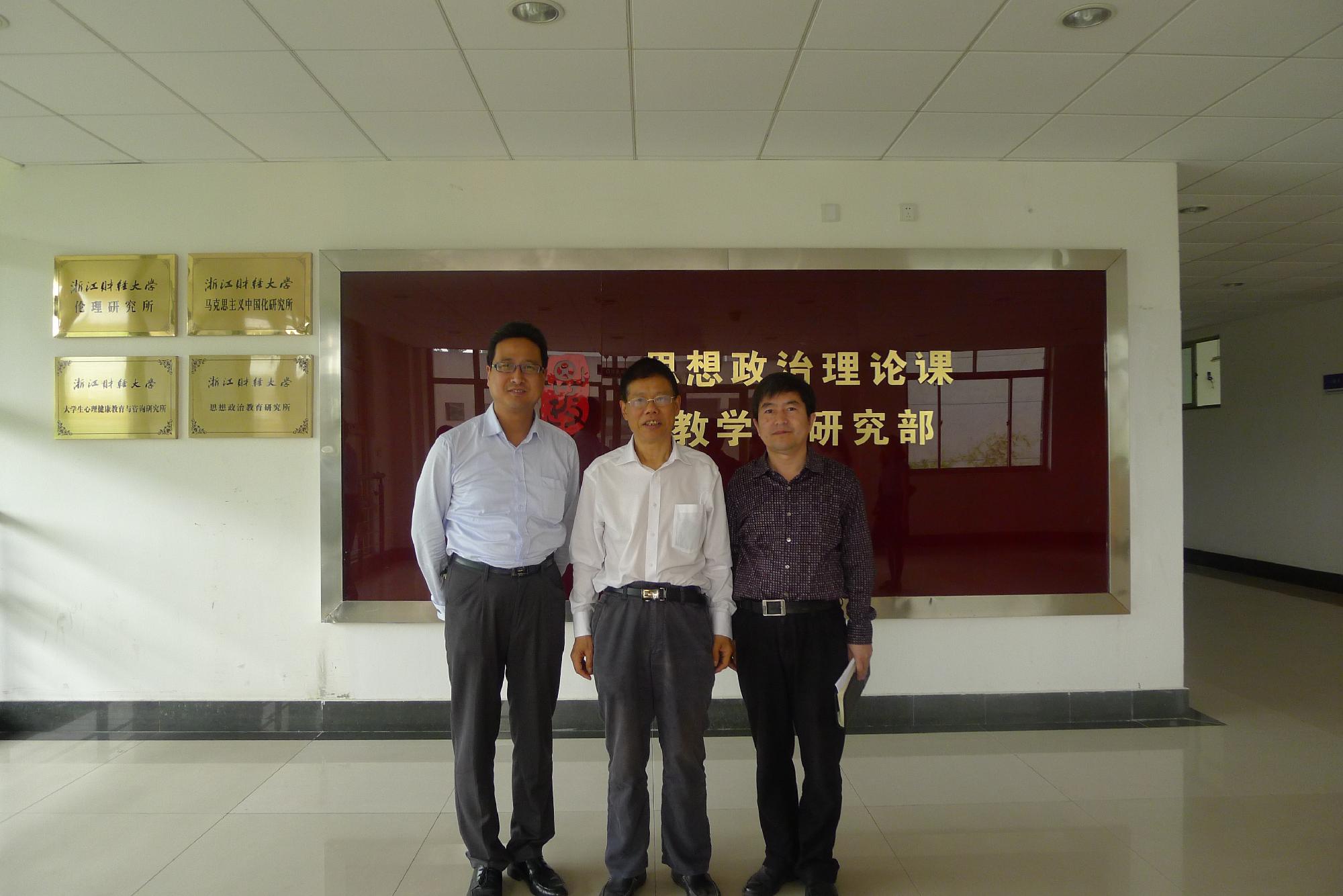 在交流中,华老师向来宾简要介绍了我部成立一年来的总体情况,尤其是我部教学、科研工作的现状和今后的发展思路。李晓娟老师也就我部思想政治教育重点学科的发展作了介绍交流。河海大学马克思主义学院孙其昂教授、戴锐教授都对我部取得的教学科研成绩表示肯定和欣赏。他们也比较详细地介绍了河海大学马克思主义学院思想政治教育专业发展的历史和现况,也谈了自己治学研究的体会和经验。双方就大学生思想政治理论课教育、思想政治教育学科前沿问题、教师个人发展等问题进行了深入的切磋探讨。