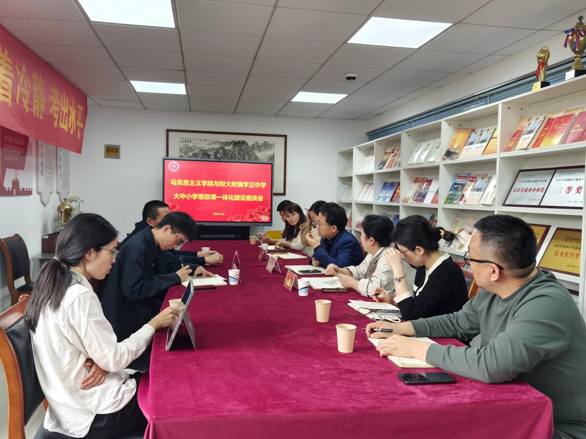 4月2日上午,我校附属学正中学校长吴直福一行来我校马克思主义学院进行“大中小思政课一体化建设”工作座谈。本次座谈由马克思主义学院院长贺武华主持,书记高燕、副院长邢雁欣,教研室主任代表、教师代表、行政人员代表、辅导员参加本次座谈会。