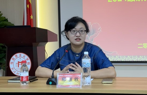 副院长邢雁欣对马克思主义法治思想中国化研究专业和伦理学专业进行介绍,并简要说明了两个专业的培养方案以及后续选课、上课的相关问题和注意事项。同时依据自身经历,引导新生做好学习规划,希望新生同学静下心来多多学习、不断进步。