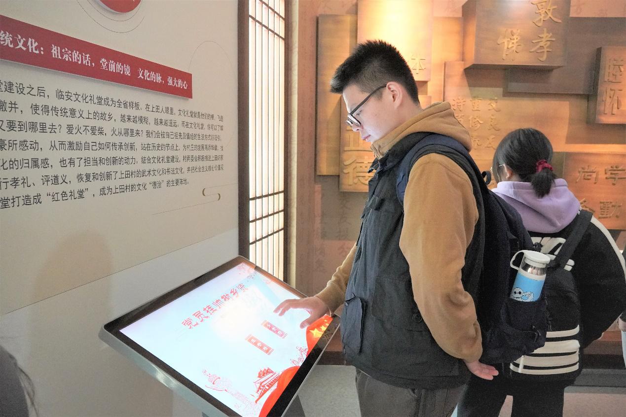 杨萧:虽然只是短短半天的上田之旅,但我同样受益匪浅。我们游览了文化礼堂等,深刻感受到了文武上田的神韵。谁能想到十多年前这还只是个脏乱差的村子呢?在潘书记与村民们的共同努力下,村子一步步地蜕变,才变成了如今的美好上田。