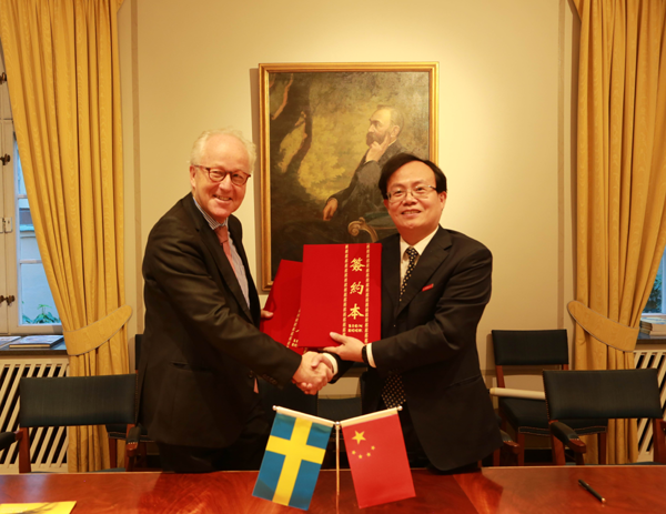 双方就共同推进文献馆建设达成共识,并举行了“ued体育 与瑞典诺贝尔基金会合作申明"的签署仪式。双方同意加强合作,全面推进文献馆建设,进一步扩大基金会和诺贝尔经济学奖在中国的影响力,积极利用诺贝尔经济学奖的资源,推动人类经济科学理论研究。基金会承诺将为文献馆建设提供指导,并一揽子授权文献馆使用基金会网站资源和基金会出版物,首创基金会授权的历史先河,我校也因此成为全球第一家获得诺贝尔基金会正式授权的专题文献馆。基金会主席还为我校文献馆欣然题词:十分感谢你们让我分享了文献馆的精彩故事,衷心祝愿贵馆发展顺达,未来更美好!