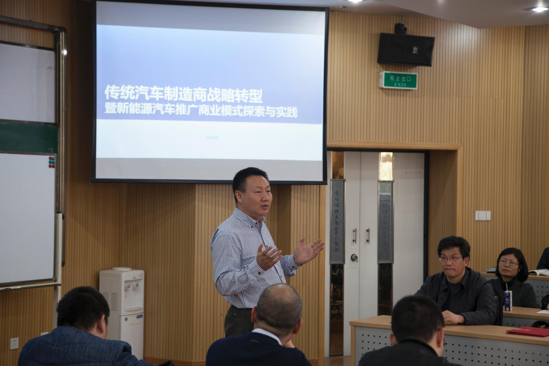 3月25日下午,浙江吉利控股集团副总裁、曹操专车董事长刘金良先生应邀莅临我院,为师生们带来了题为《传统汽车制造商战略转型暨新能源汽车推广商业模式探索与实践》的专题讲座。讲座由副院长倪文斌教授主持。