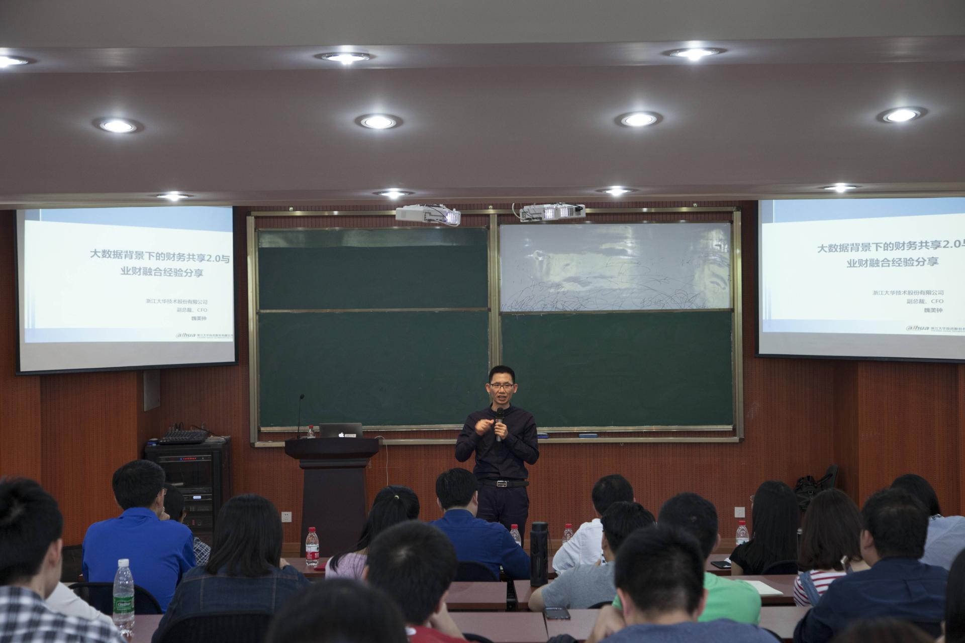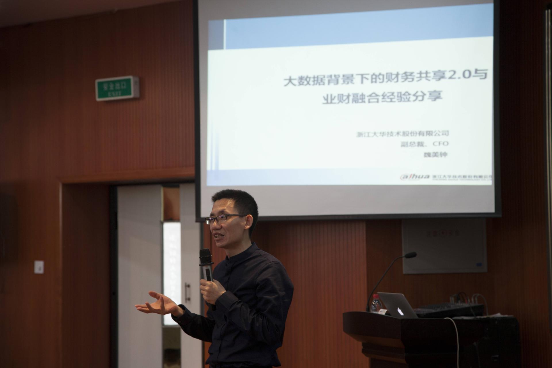 5月13日下午,浙江大华技术股份有限公司财务总监兼副总裁魏美钟先生应邀莅临我院,为师生们带来了题为《信息化与现代财务》的专题讲座。讲座由我院党委副书记谢敏主持。