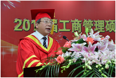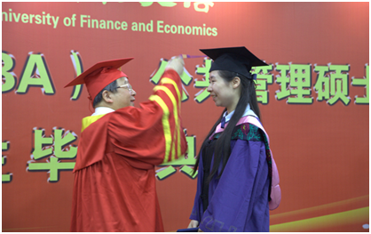 钟晓敏为毕业生拨穗。我院院长董进才为MBA毕业生颁发证书。副院长倪文斌宣读了关于准予我院2017届毕业研究生毕业及授予学位的文件。