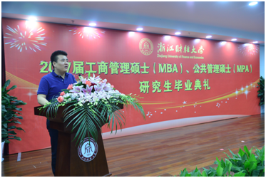 7月1日下午,我院与公共管理学院一同在下沙校区隆重举行了2017届MBA、MPA研究生毕业典礼。校长钟晓敏,校党委委员、东方学院党委书记邵毅平,工商管理学院(MBA学院)、公共管理学院(MPA教育中心)、党校办负责人,导师代表与140名毕业生及亲友代表等欢聚一堂,共同见证这一美好时刻。典礼由研究生院副院长、研工部副部长张梅芳主持。