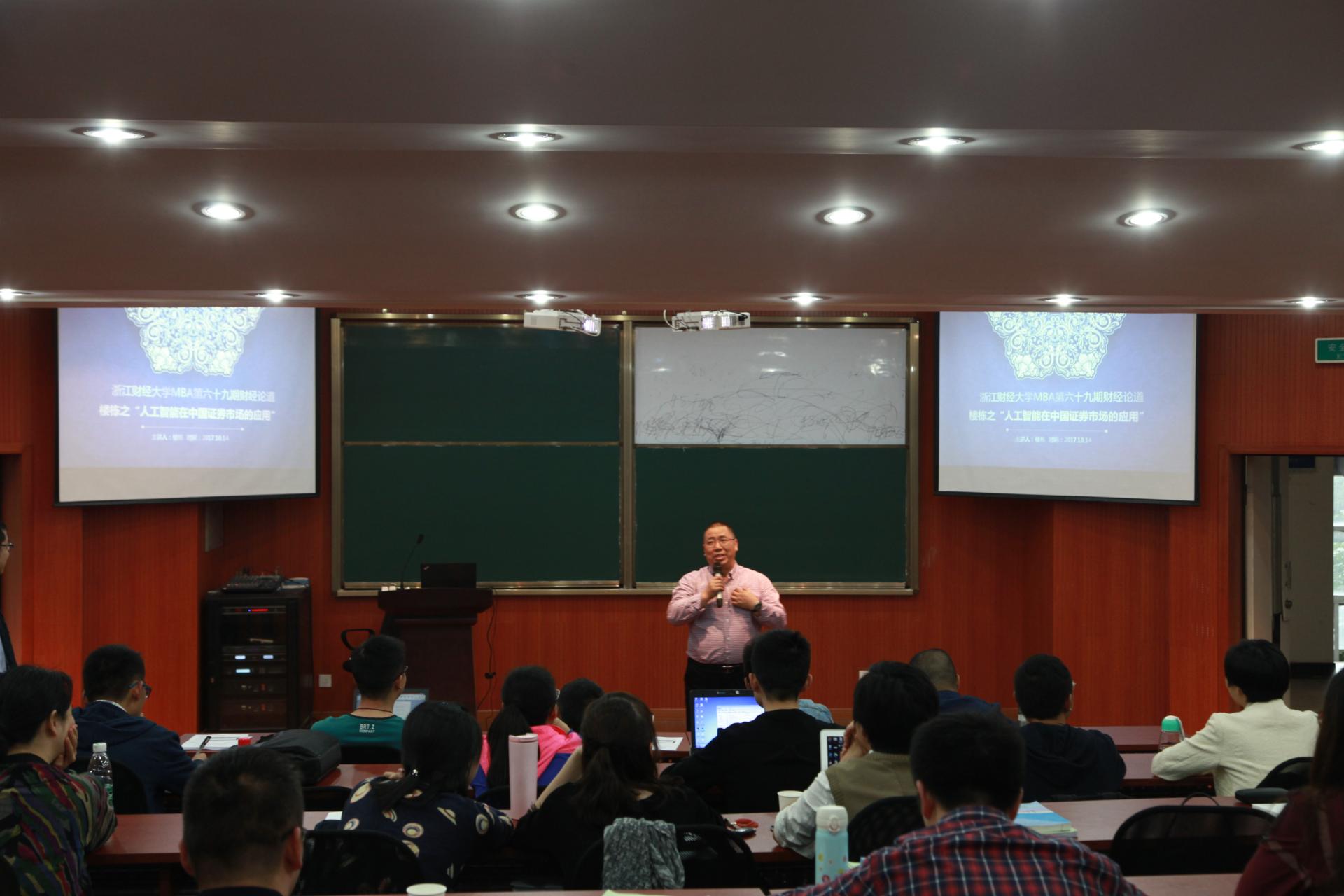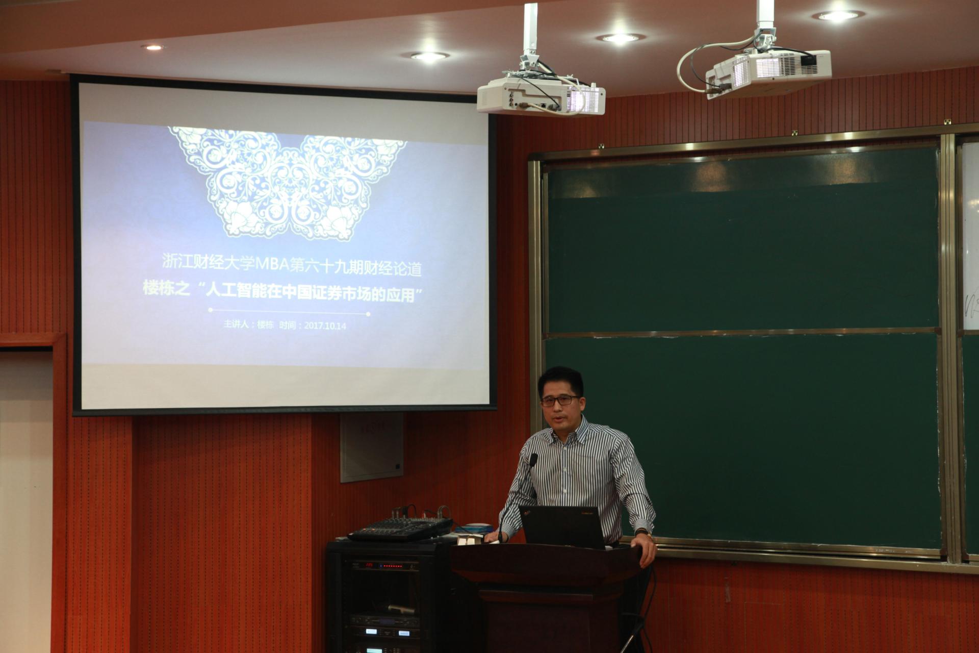 10月14日下午,我校校友浙江盈阳资产管理股份有限公司控股人楼栋先生应邀莅临我院,为师生们带来了题为《人工智能在中国证券市场的应用》的专题讲座。讲座由我院党委书记黄卫华主持。