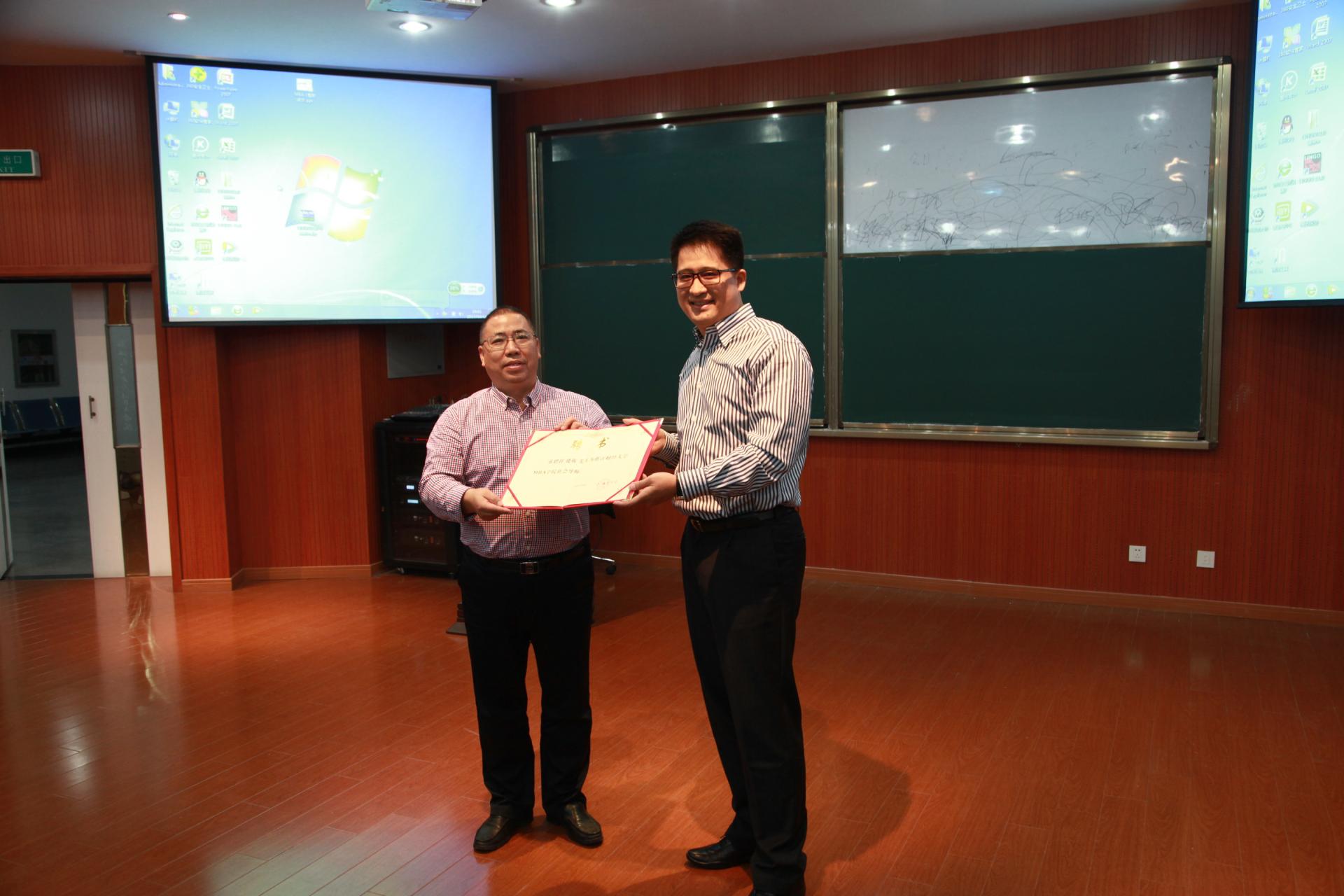 讲座开始前,举行了简短的聘任仪式,我院黄卫华书记为楼栋先生颁发我校MBA学院社会导师聘任证书。