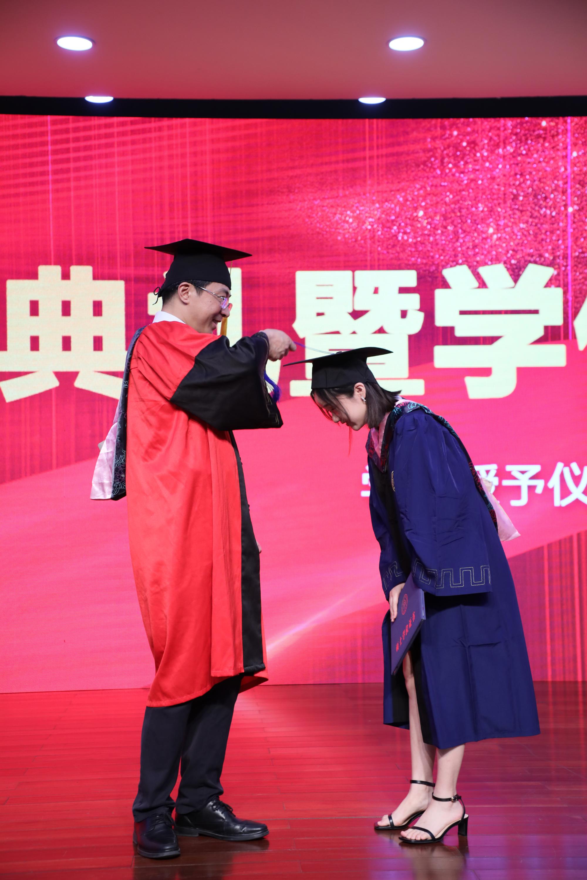 工商管理学院(MBA学院)副院长戴维奇宣读了关于准予我院毕业研究生毕业及授予学位的文件。工商管理学院(MBA学院)党委书记黄卫华为MBA毕业生颁发证书。工商管理学院(MBA学院)院长王建明为毕业生拨穗。