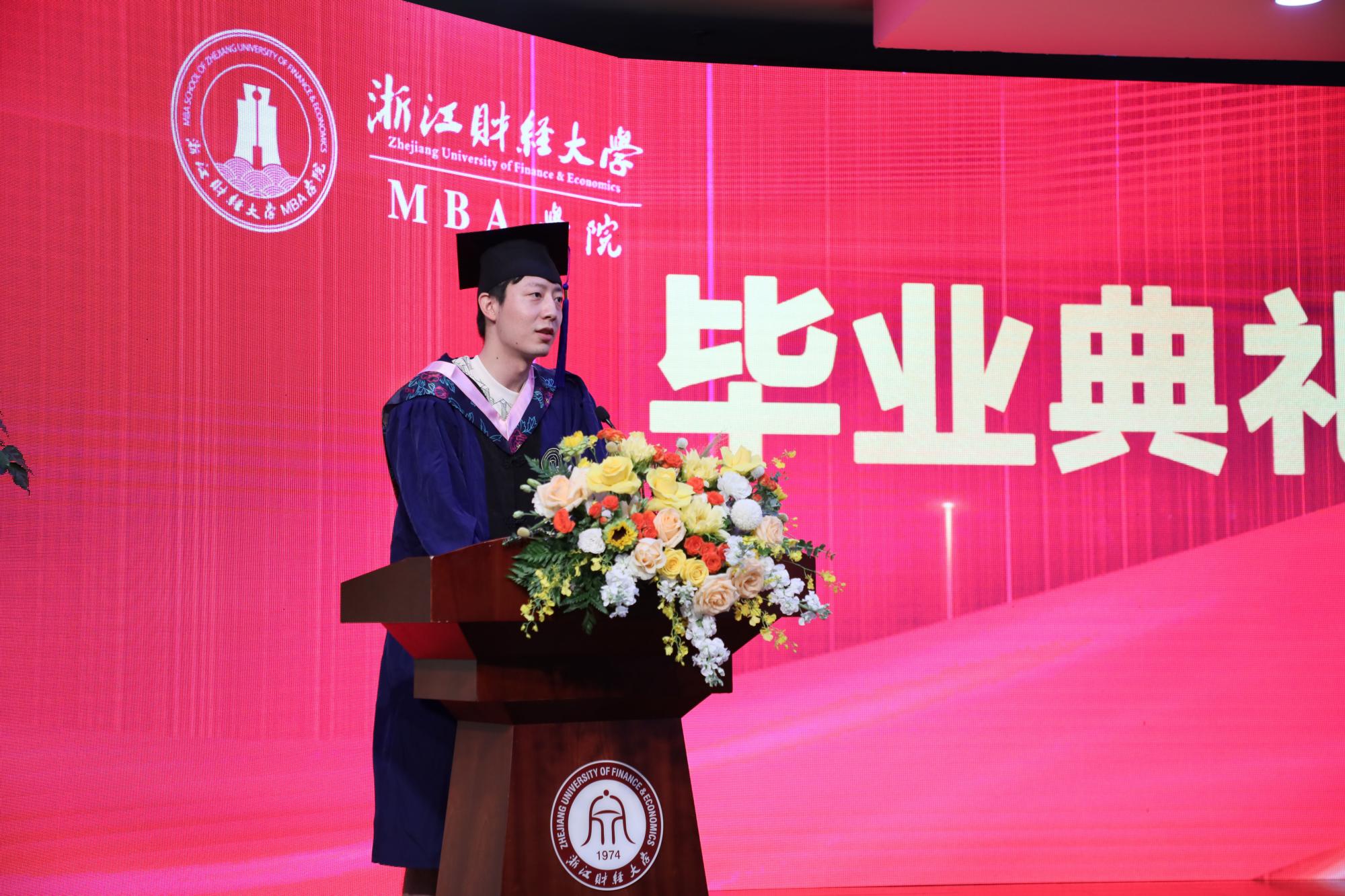 工商管理学院(MBA学院)导师王跃梅教授,毕业生亲友代表2018级沈杰家属毛爱君、毕业生代表2019级赵雯俊、在校生代表2021级崔范一分别在典礼上发言。