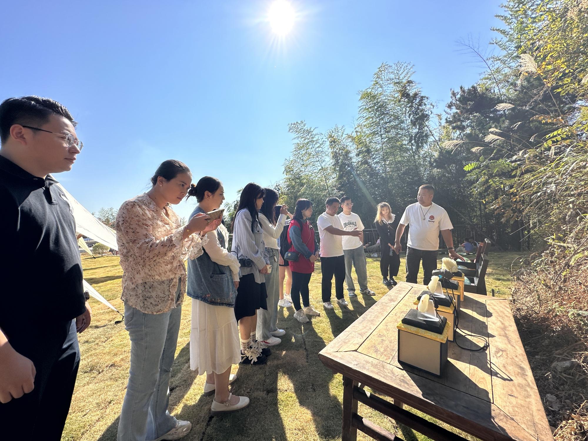 “来,大家下车后请看向正前方的那座山峰,就是我们海拔1314米的金华北山之巅”。11月5日,跟随着婺乡文旅张健老师的介绍,ued体育 MBA学院2023级2班同学们在历经一个小时盘山公路后,终于望见了期待已久的1314米海拔山峰,正式开启了今天的移动课堂。