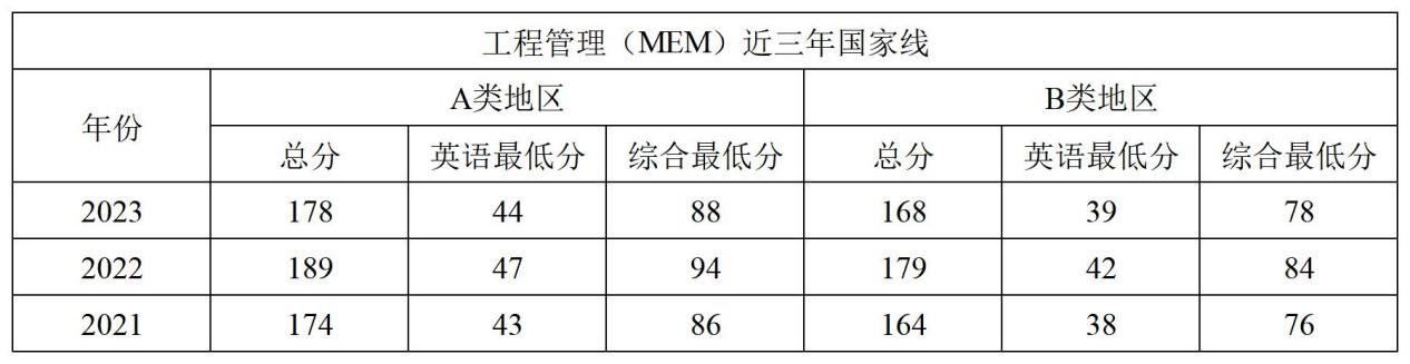 2.复试时间、地点、方式由我校确定,将另行通知。ued体育 MEM教育中心组织命题和考试。工程管理(MEM)近三年国家线分数如下: