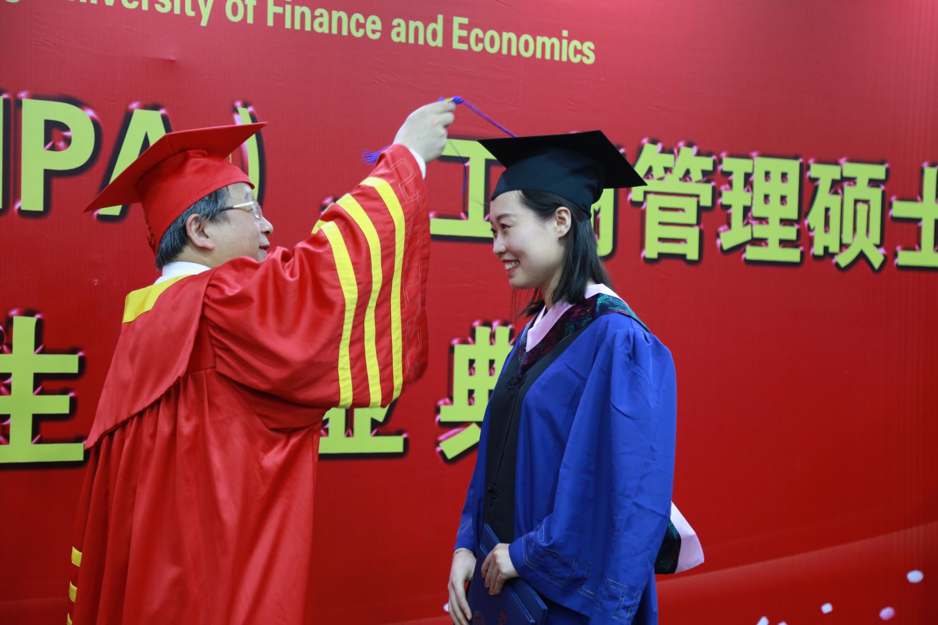 公共管理学院院长郭剑鸣为MPA毕业生颁发毕业证和学位证。