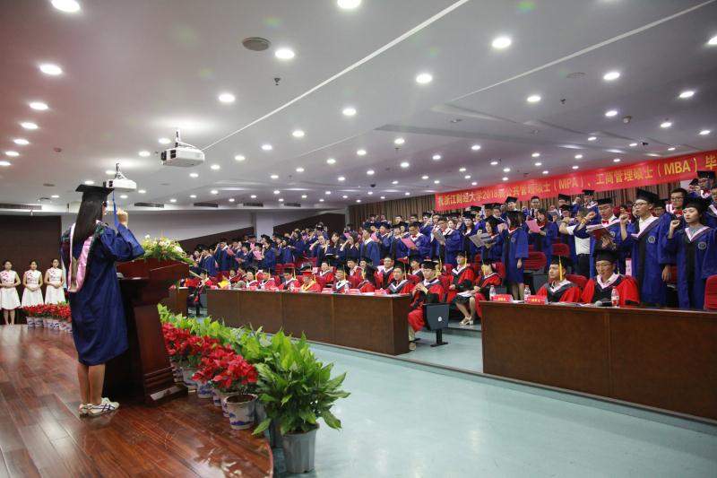 接下来,全体2018届MPA毕业生研究生进行了毕业宣誓,财大学子告别母校,走向社会要铭记浙财校训,谨遵师长教诲,不忘初心,牢记使命,坚定理想信念,勇担时代重任,为实现中华民族伟大复兴中国梦而努力奋斗。