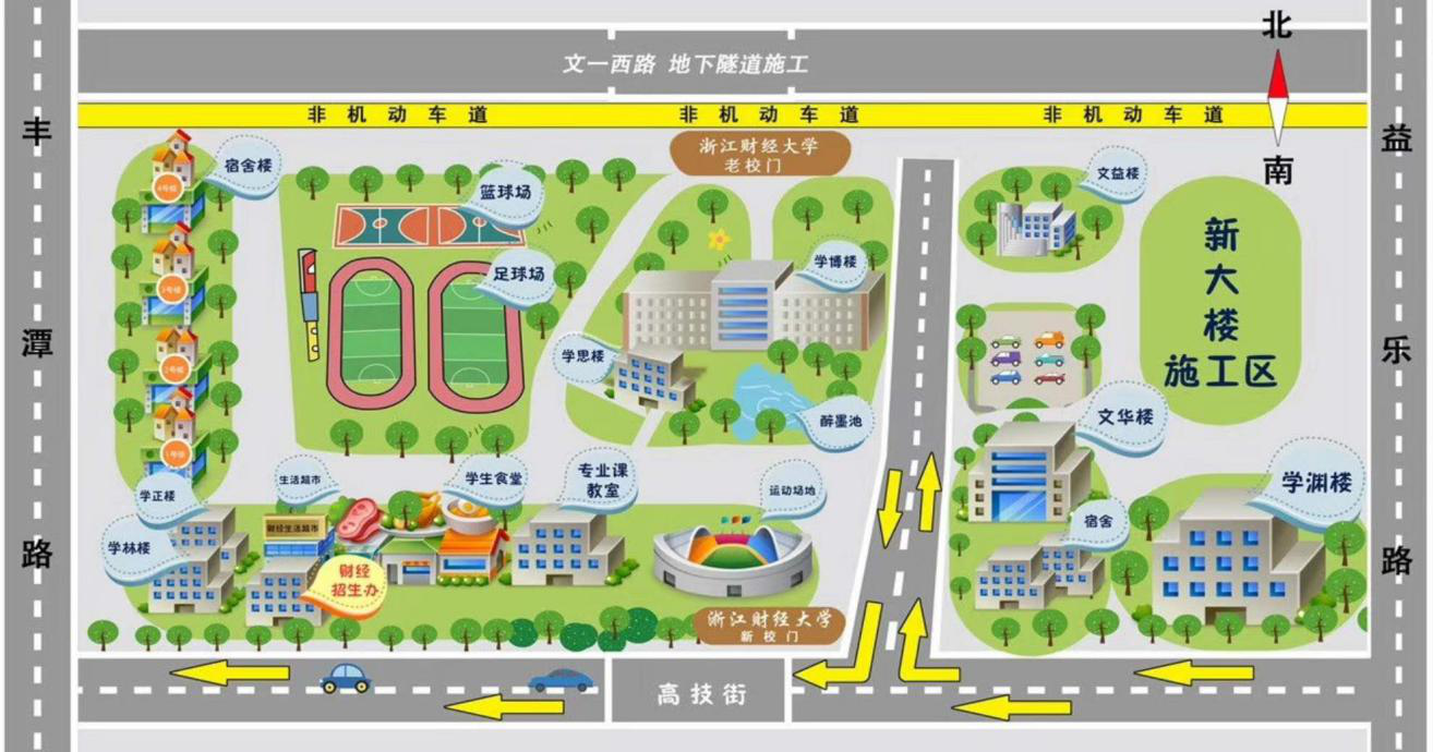 1、校区南门高技街入口机动车暂停通行,车辆改走北门文一西路入口通行,并停放在学博楼北侧停车场;