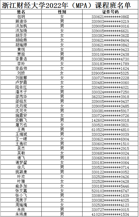 根据报名、审核,现将ued体育 2022年(MPA)课程班名单公示如下: