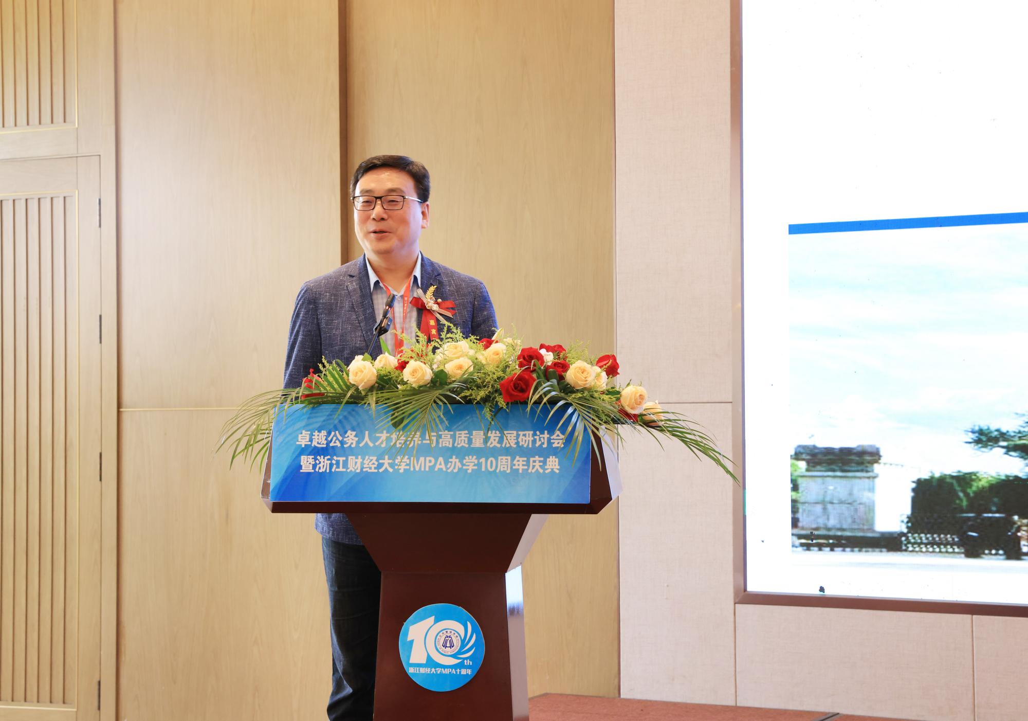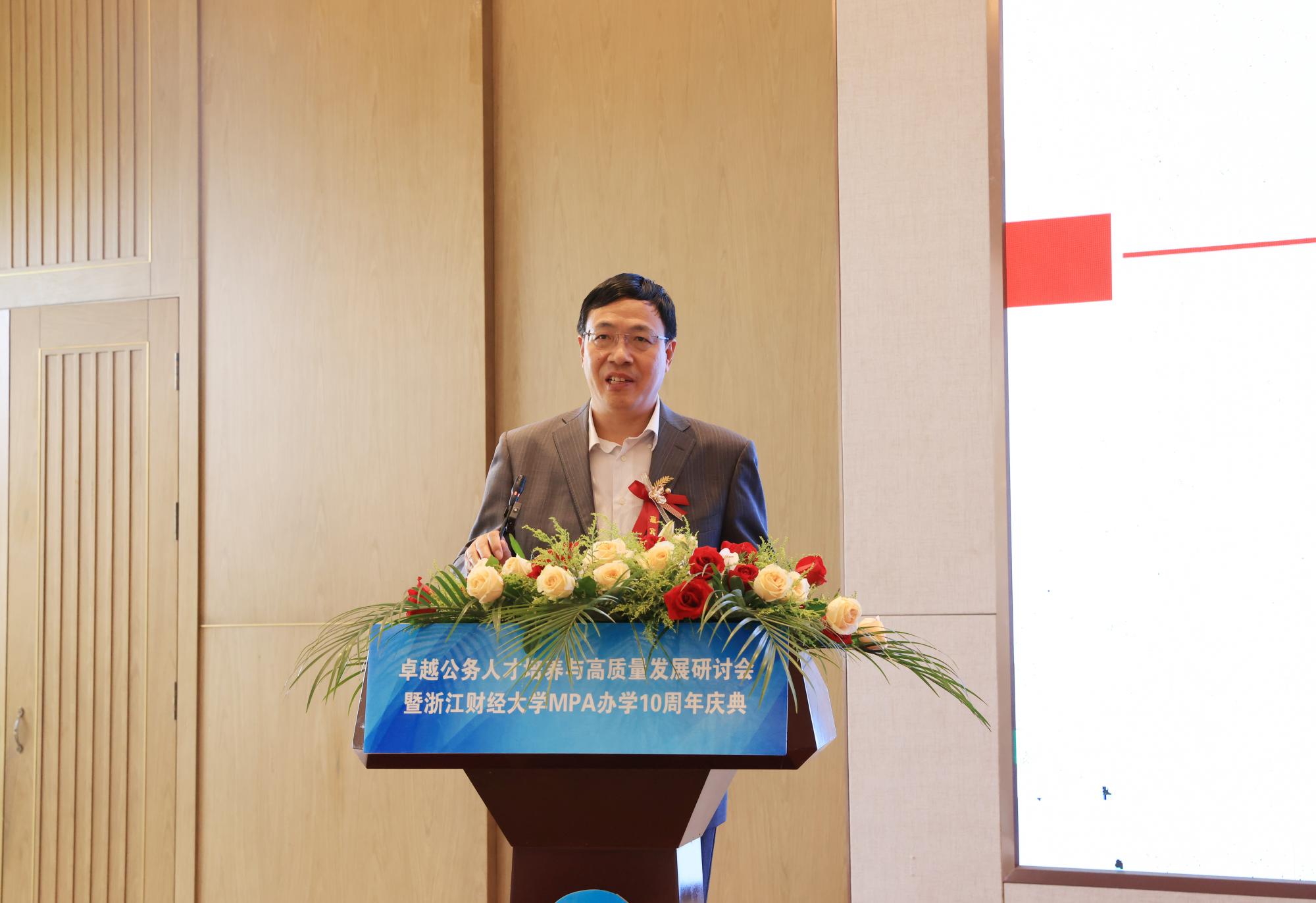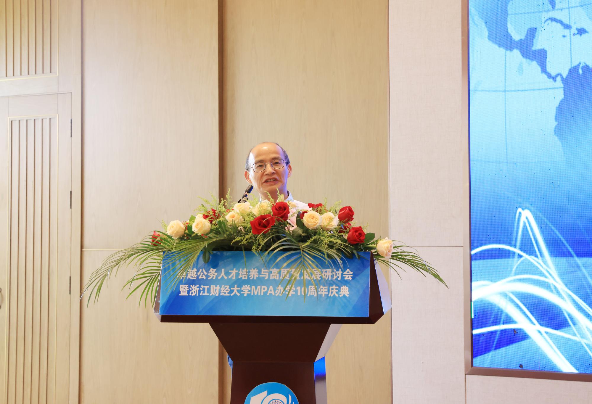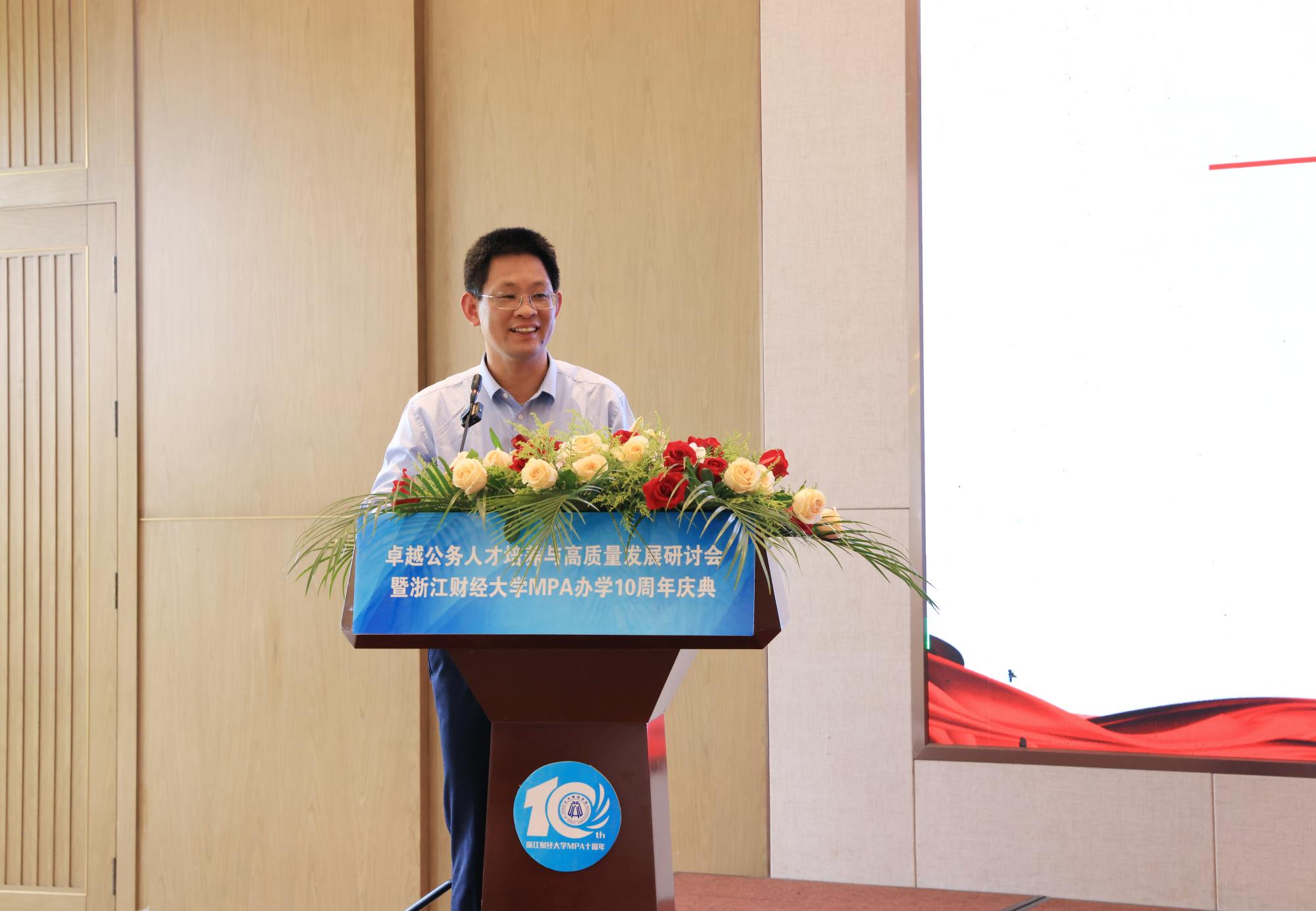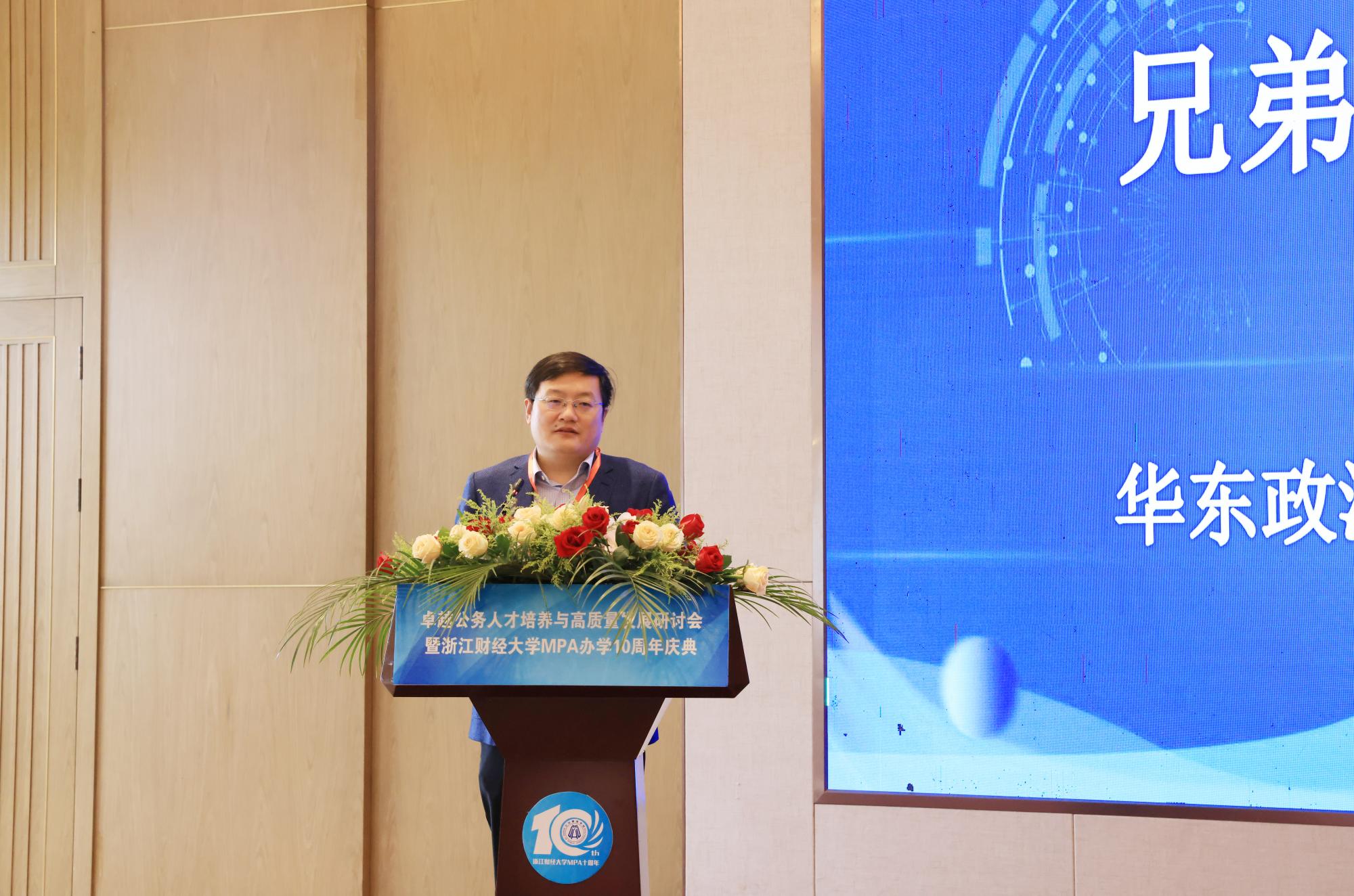 华东政法大学政治学与公共管理学院院长任勇、浙财大工商管理学院副书记吴玻代表兄弟院校分别致辞,对ued体育 MPA在办学水平、人才培养方面的成就表示热烈的祝贺。