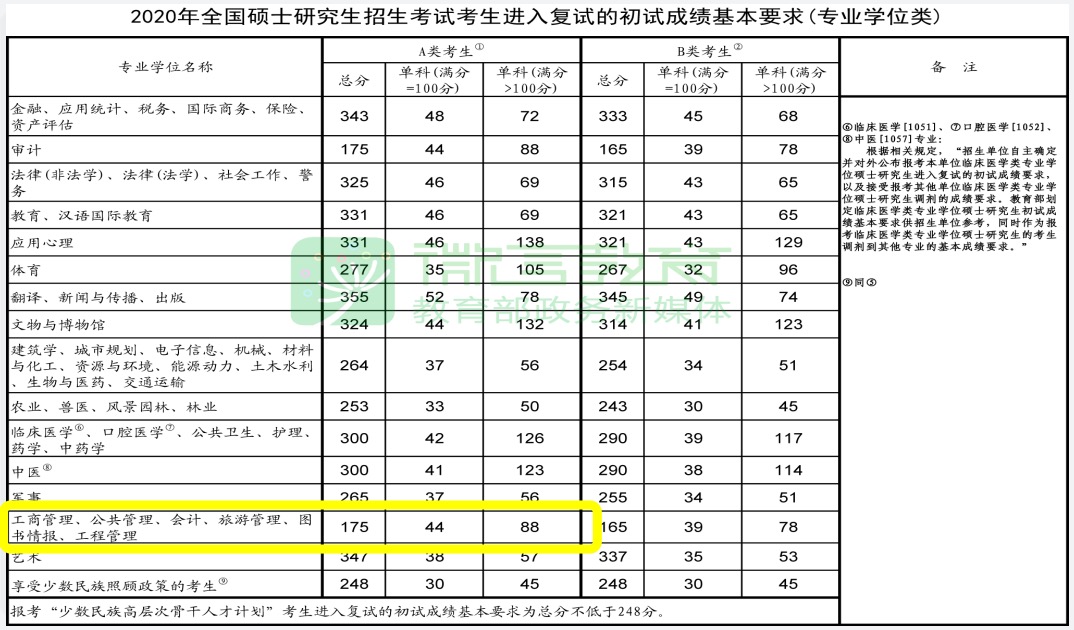 教育部公布2020年全国硕士研究生招生考试国家分数线后