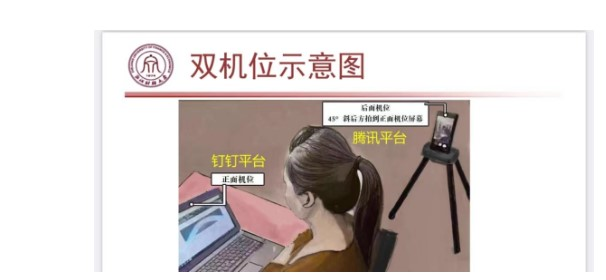 3.硬件设备。网络远程复试采用双机位。一是主机位(钉钉),需使用笔记本电脑或台式机、摄像头、麦克风、音箱。二是辅机位(腾讯会议),需使用手机或笔记本电脑或台式机或pad等平板设备(带有摄像头),放于考生侧后方45度,用于监考人员在复试过程中观测考生的后方及周边环境情况。应确保网络信号良好且能满足复试要求,应具有有线宽带、WIFI、4G/5G网络等网络条件。