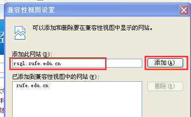 5在兼容性视图设置页面,在“添加此网站”处添加要兼容的网页地址后,点击添加按钮