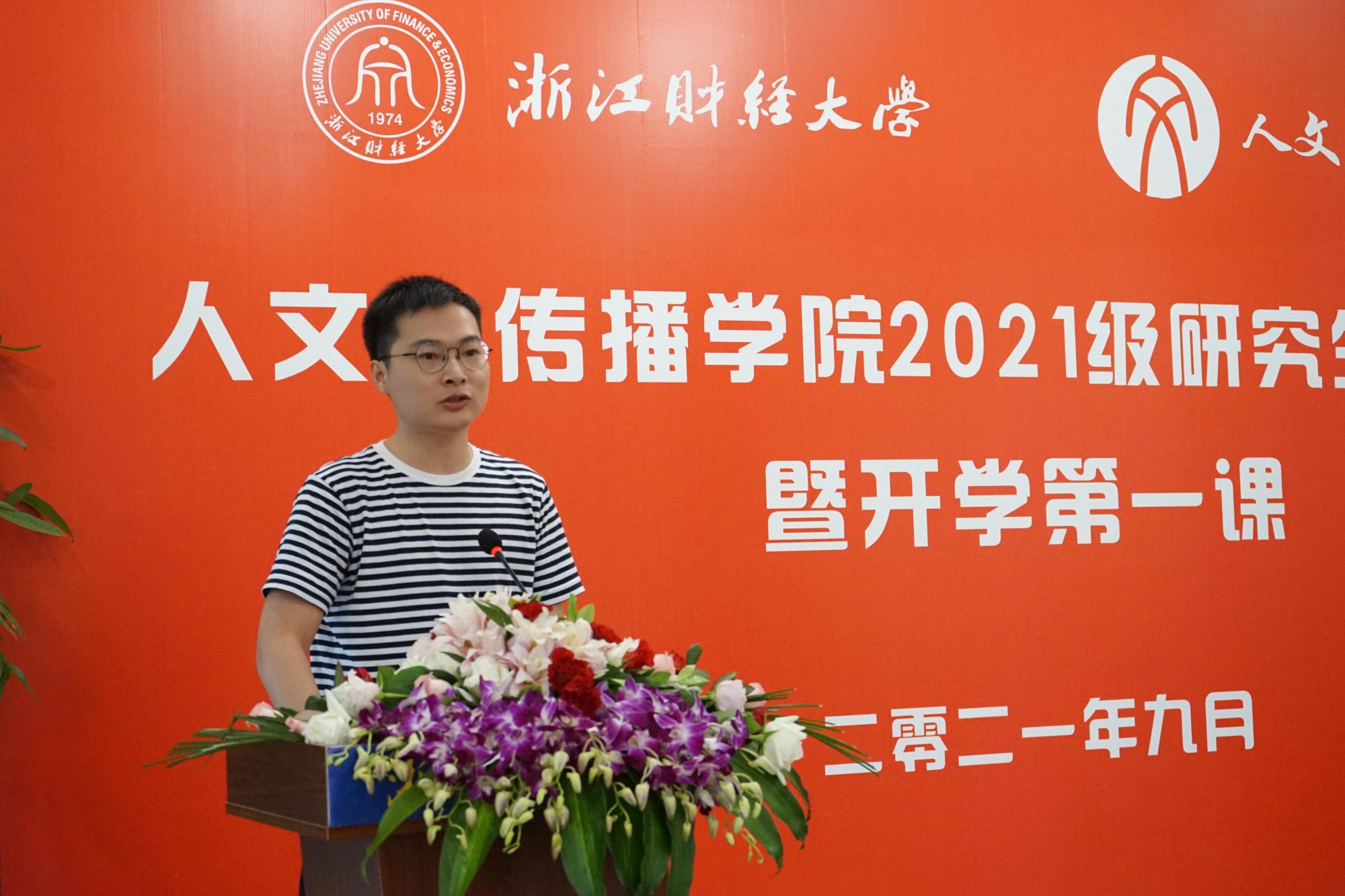 新生代表2021级汉语国际教育专业黎菁予引用三句诗歌与大家共勉。“少年辛苦终身事,莫向光阴惰寸功”,应心怀“慕鸿鹄而高翔”的抱负,充满“欲上青天揽明月”的豪情,做一位无愧于自己,也无愧于时代的人文学子!