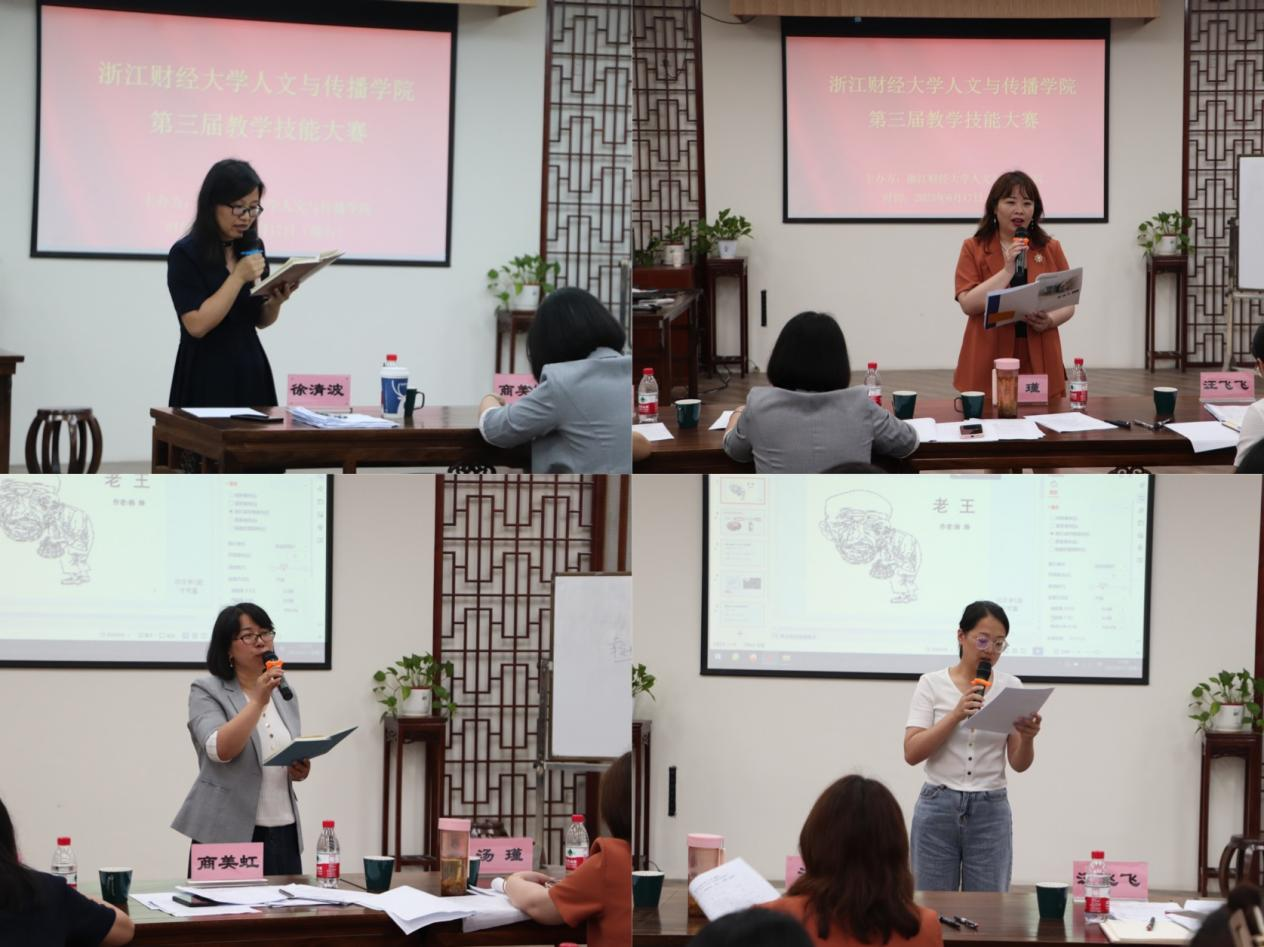 课堂教学是训练教学技能最直接有效的途径,为提升我院研究生和本科生的教学实践技能,我院于6月17日在7-212问津书院成功举办第三届教学技能大赛。本次大赛有幸邀请到崇德实验学校副校长、特级教师汤瑾,景苑中学高级教师商美虹,下沙中学一级教师徐清波,新湾中学教务处主任、一级教师汪飞飞,以及人文与传播学院副教授、硕士生导师付伊担任大赛评委。