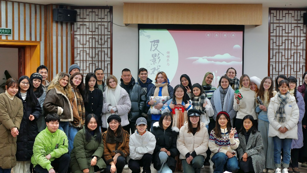 一层影窗,白幕透亮。皮影戏是中国传统戏曲艺术的一种,集工艺美术、文学作品、音乐创作、舞台表演等多种艺术元素于一体,历史悠久、源远流长。活动现场,留学生们亲身体验了《哪吒闹海》《年的故事》和《武松打虎》三部经典皮影剧目的演绎。光影交错中,一个个皮影人物在白幕上翻飞腾挪、活灵活现。伴随着传统曲调唱腔,每位学生都被皮影戏艺术的魅力深深吸引,现场气氛热烈。