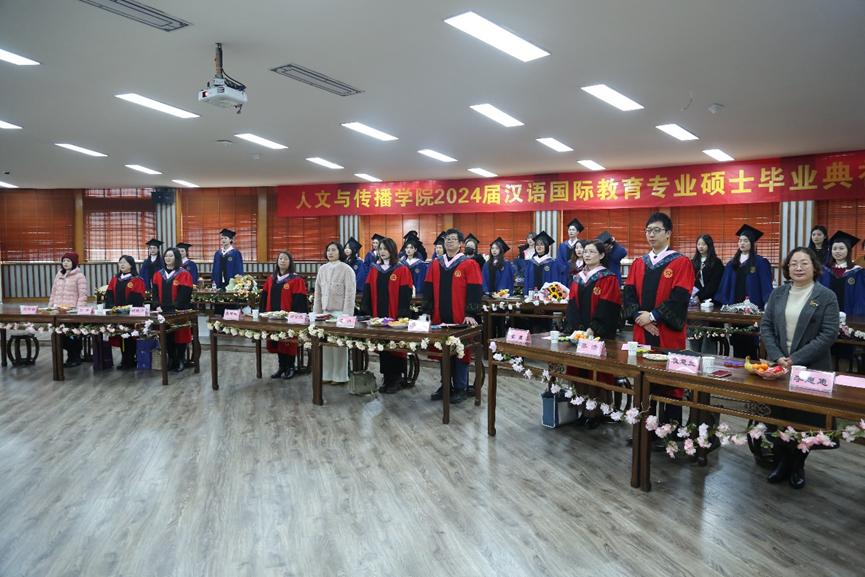 2024年1月10日上午,随着毕业短片《我的浙财青春》的放映,ued体育 人文与传播学院2024届汉语国际教育专业硕士毕业典礼暨学位授予仪式在问津书院隆重举行。人文与传播学院党委书记罗金艳,副院长毋丹,毕业生导师吴智斌、孙德平、崔霞、付伊、姚晓萍、苏浩,研究生辅导员,研究生秘书,以及19名2024届汉语国际教育专业硕士毕业生出席典礼,仪式由院党委副书记袁慧兰主持。